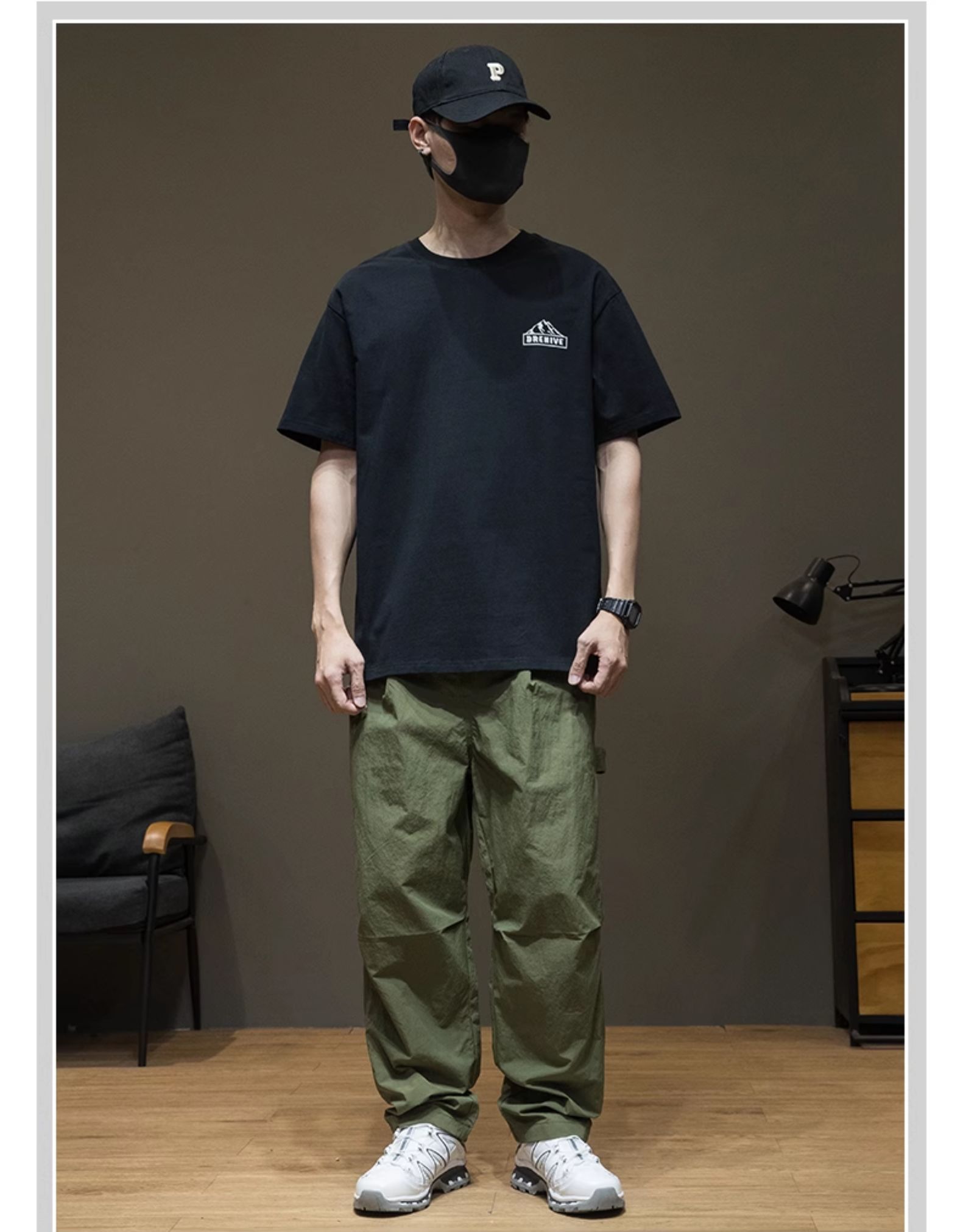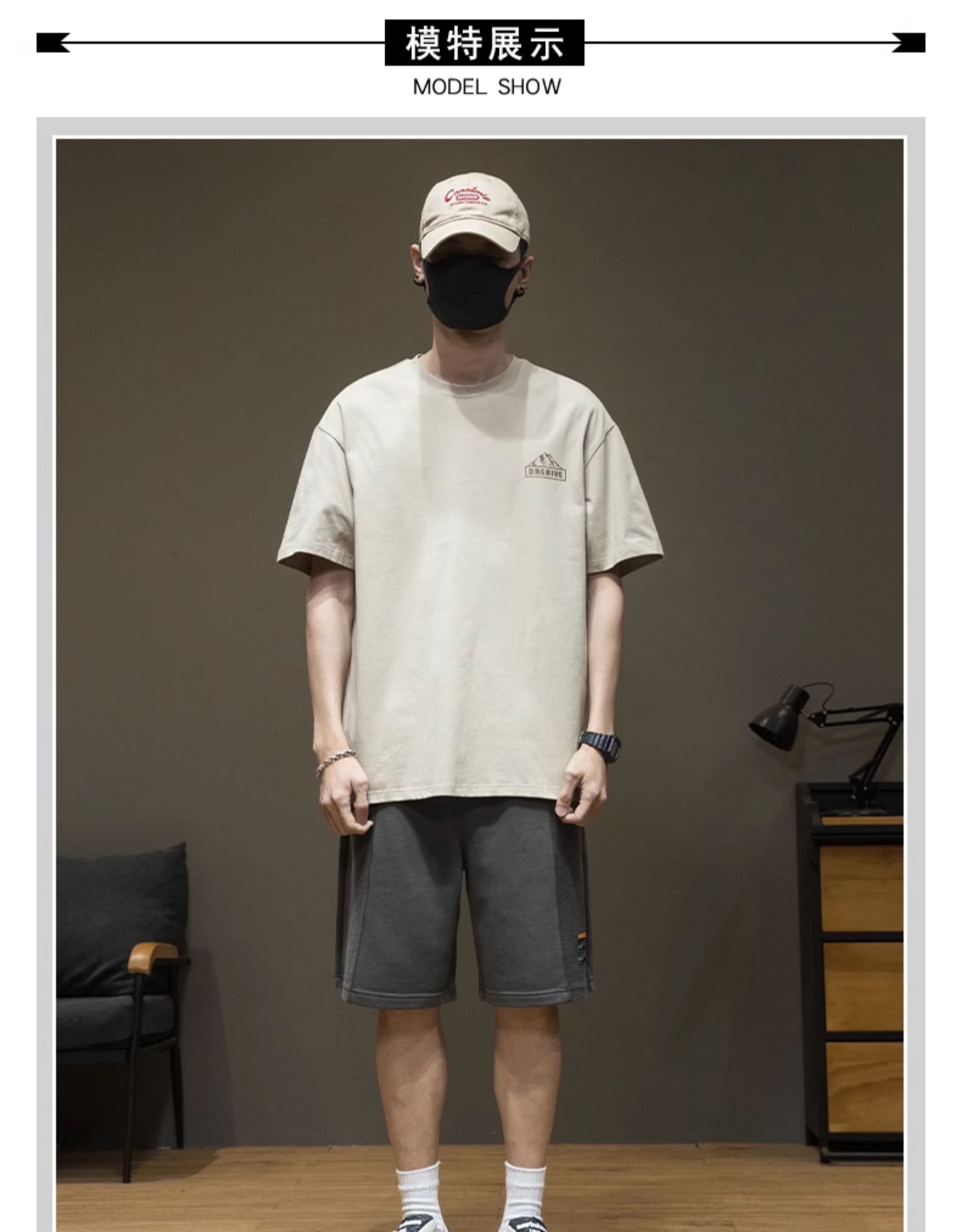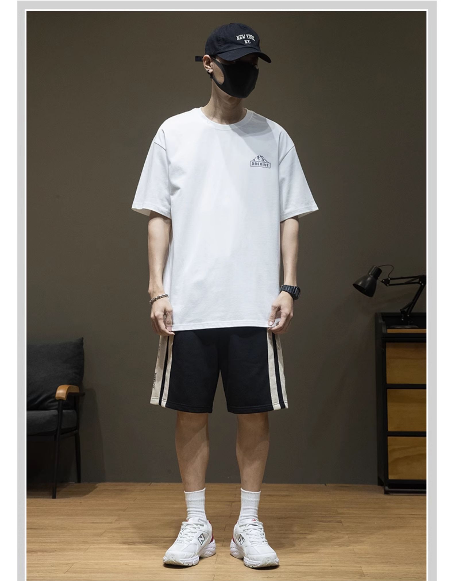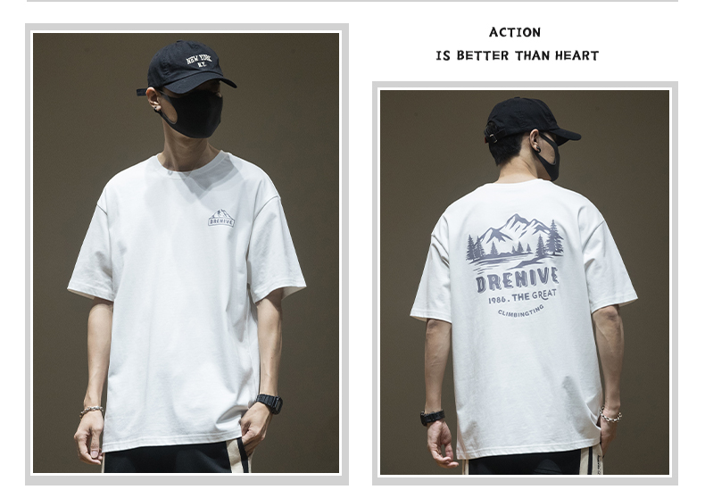 3 핀 코튼 마운틴 프린트 반팔 티셔츠 남자 2024 년 여름 새로운 느슨한 플러스 사이즈 반소매 티셔츠 트렌디스토어 가기