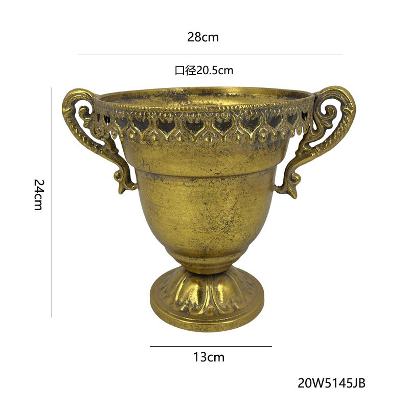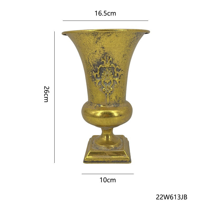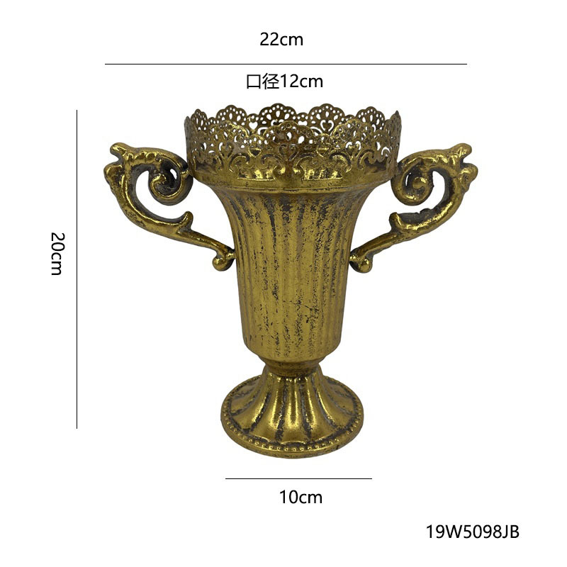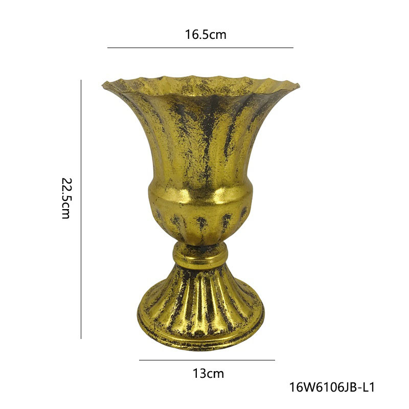 유럽 고전 금속 양각 꽃병 호텔 및 B&B 장식 오래된 황금 화분 레스토랑 탁상 꽃 장식품