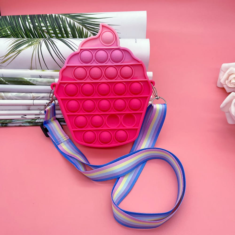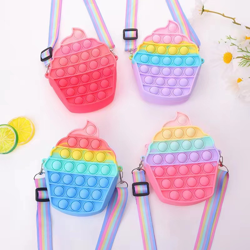 새로운 아이스크림 버블 실리콘 가방 레인보우 감압 아이스크림 크로스 바디 동전 지갑 여성을위한 귀여운 어린이 가방