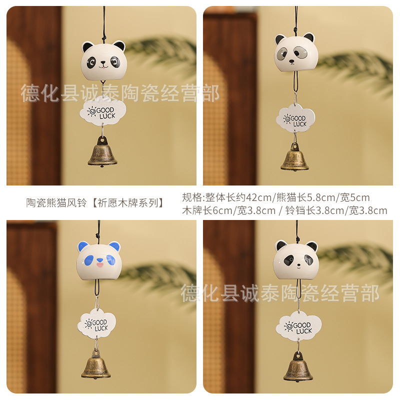 창조적 인 팬더 세라믹 바람 벨 펜던트 소원 벨 매달려 휴일 선물 줄기 공예 관광 기념품스토어 가기