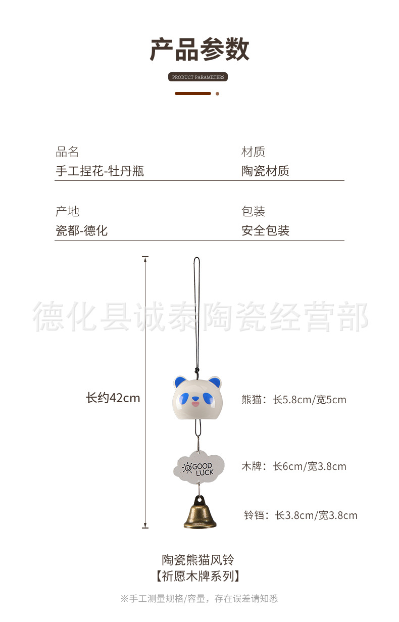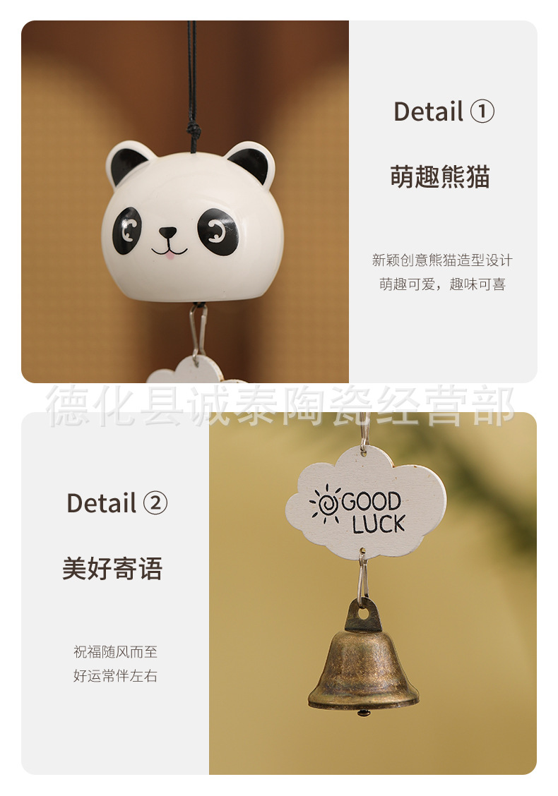 창조적 인 팬더 세라믹 바람 벨 펜던트 소원 벨 매달려 휴일 선물 줄기 공예 관광 기념품