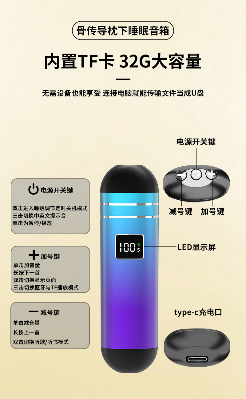 2025년형 미니 골전도 스피커 스마트 무선 블루투스 오디오 베개 밑 수면용 야간 청취 스마트 야간 청취