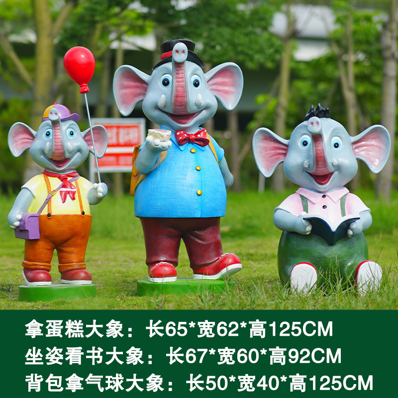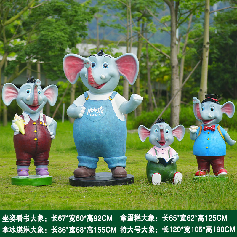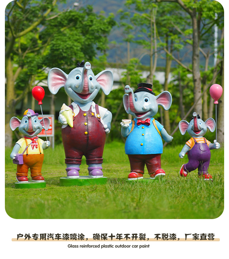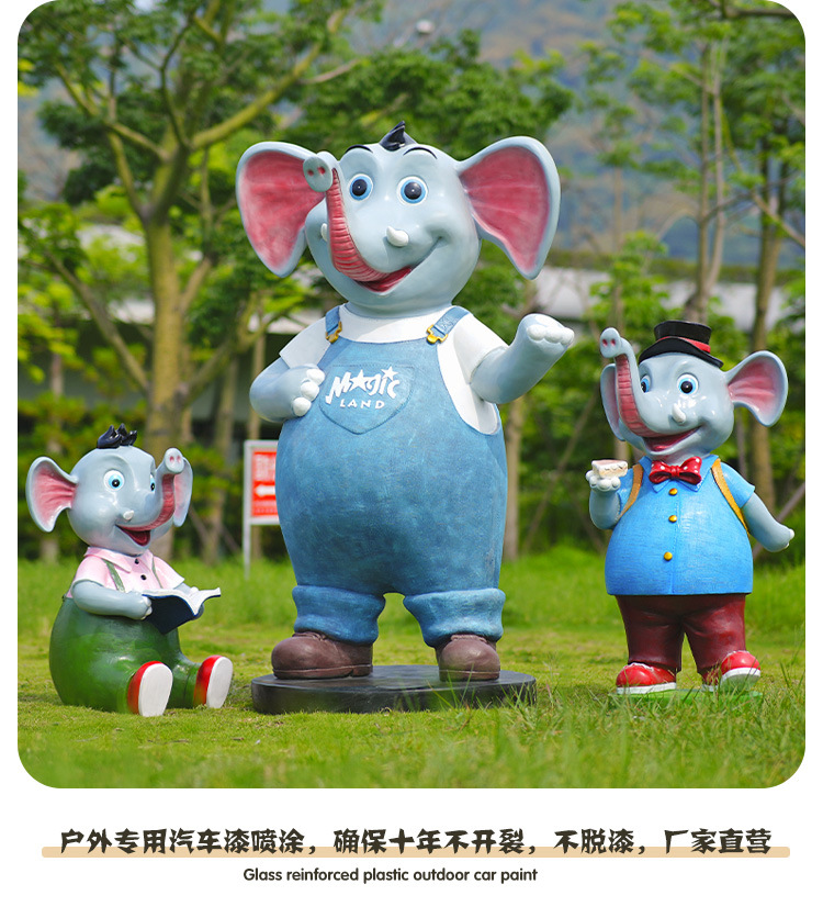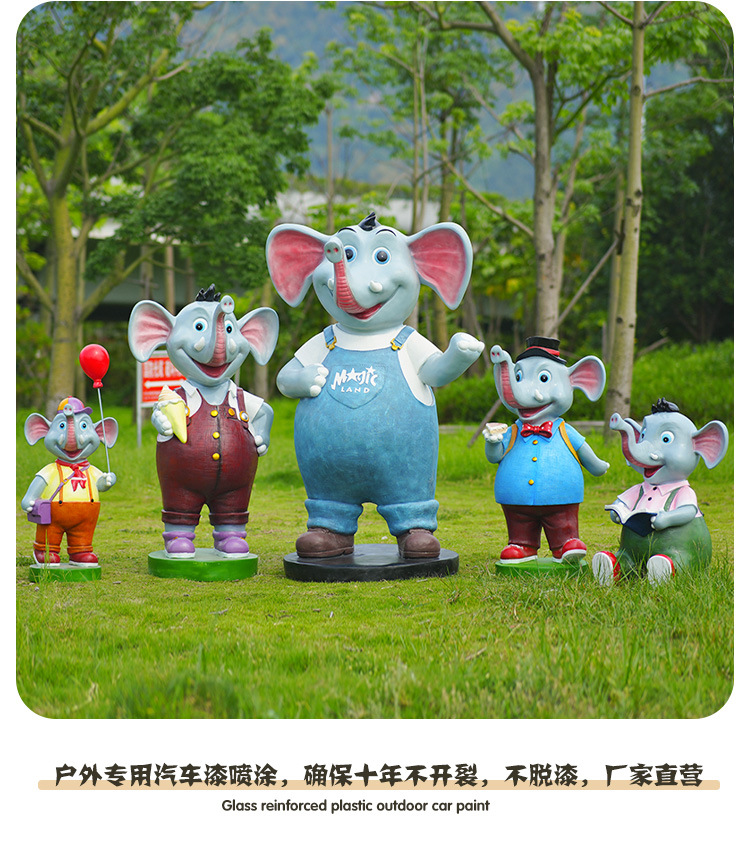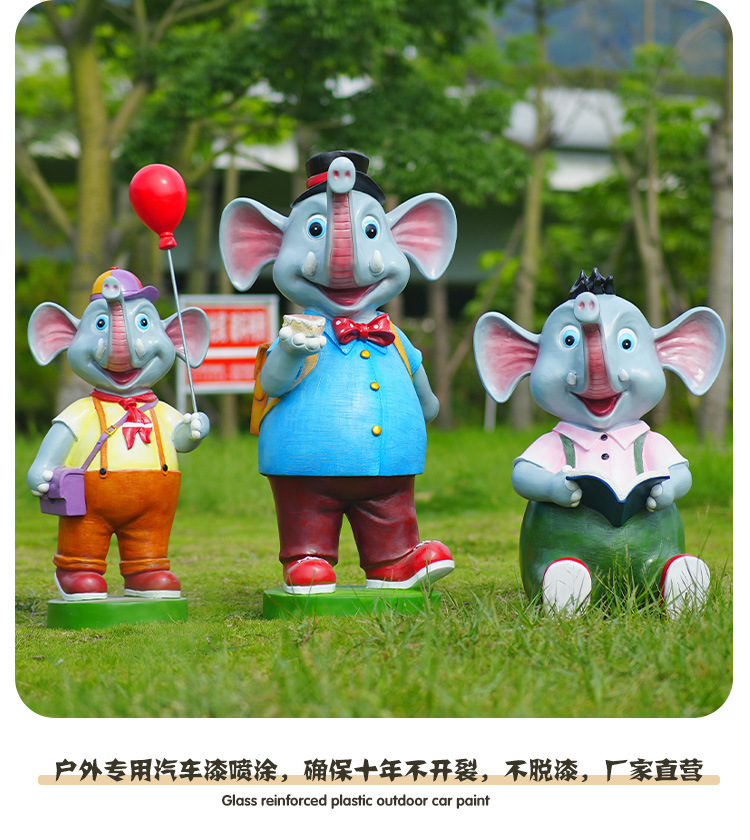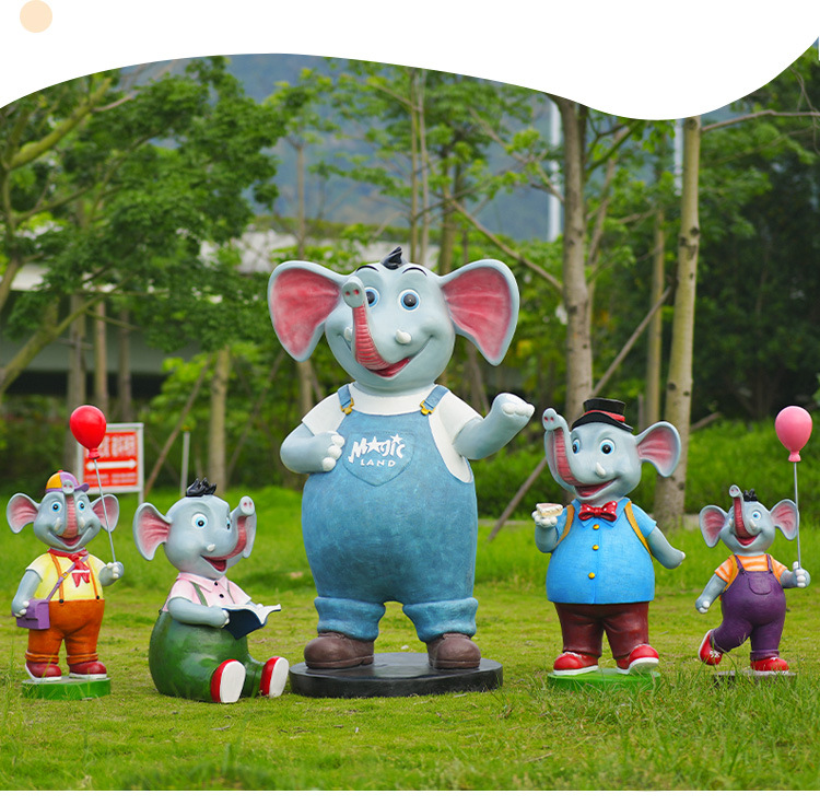 만화 동물 코끼리 유리 섬유 강화 플라스틱 조각 장식품 야외 유치원 공원 풍경 잔디 장식스토어 가기
