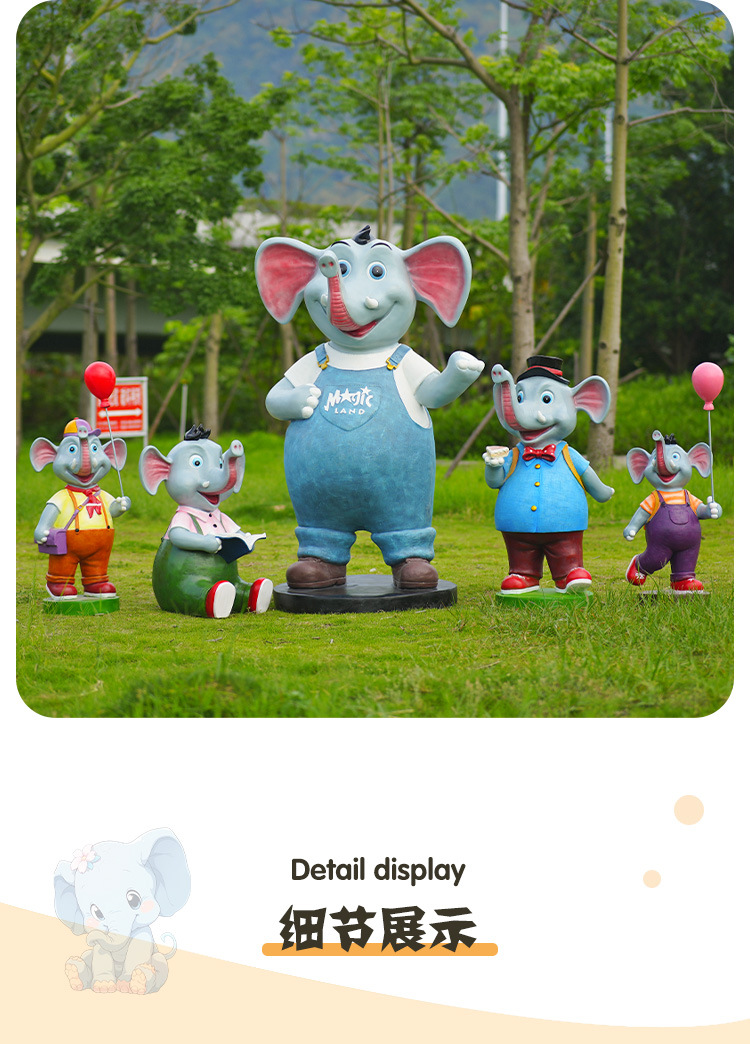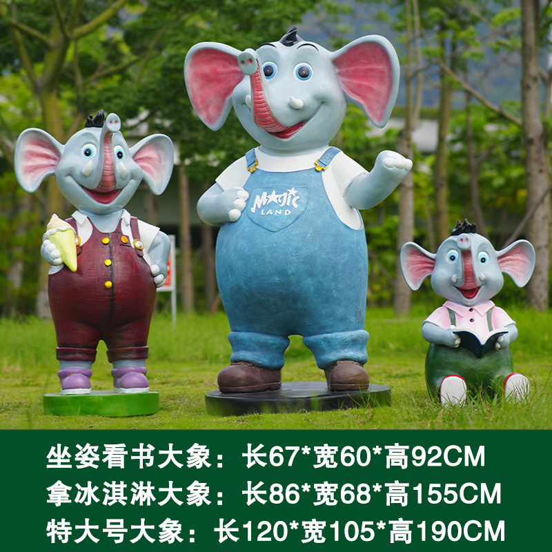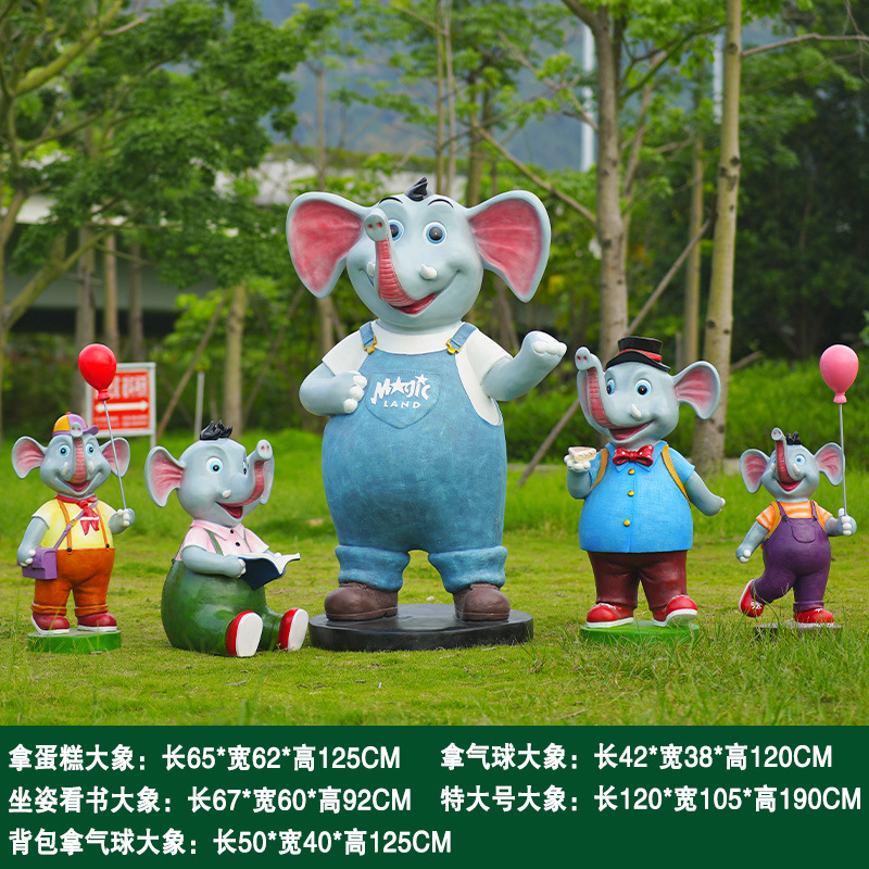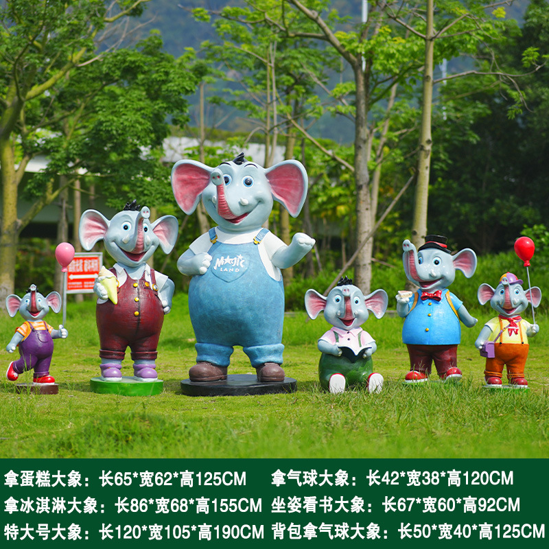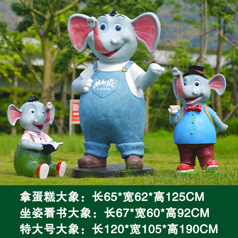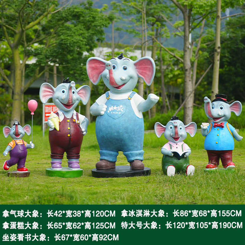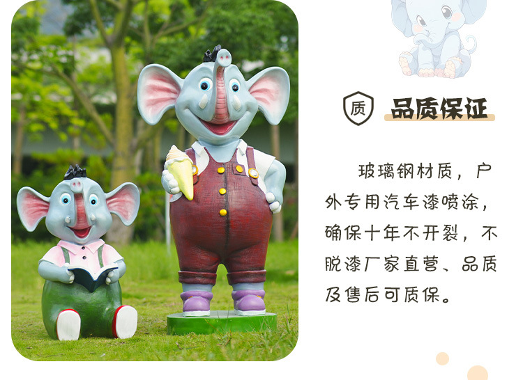 만화 동물 코끼리 유리 섬유 강화 플라스틱 조각 장식품 야외 유치원 공원 풍경 잔디 장식스토어 가기