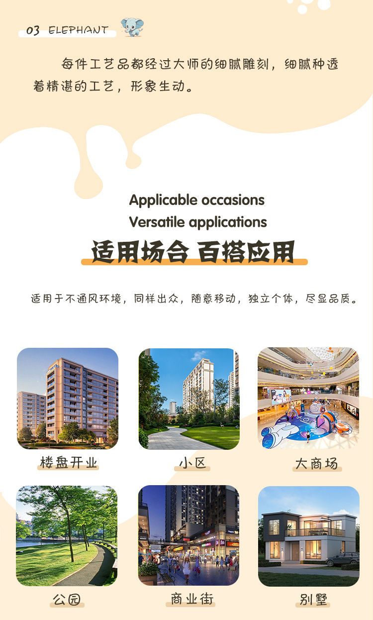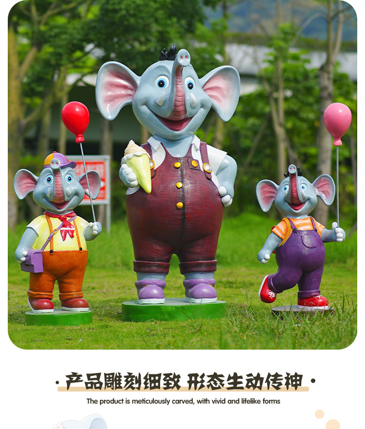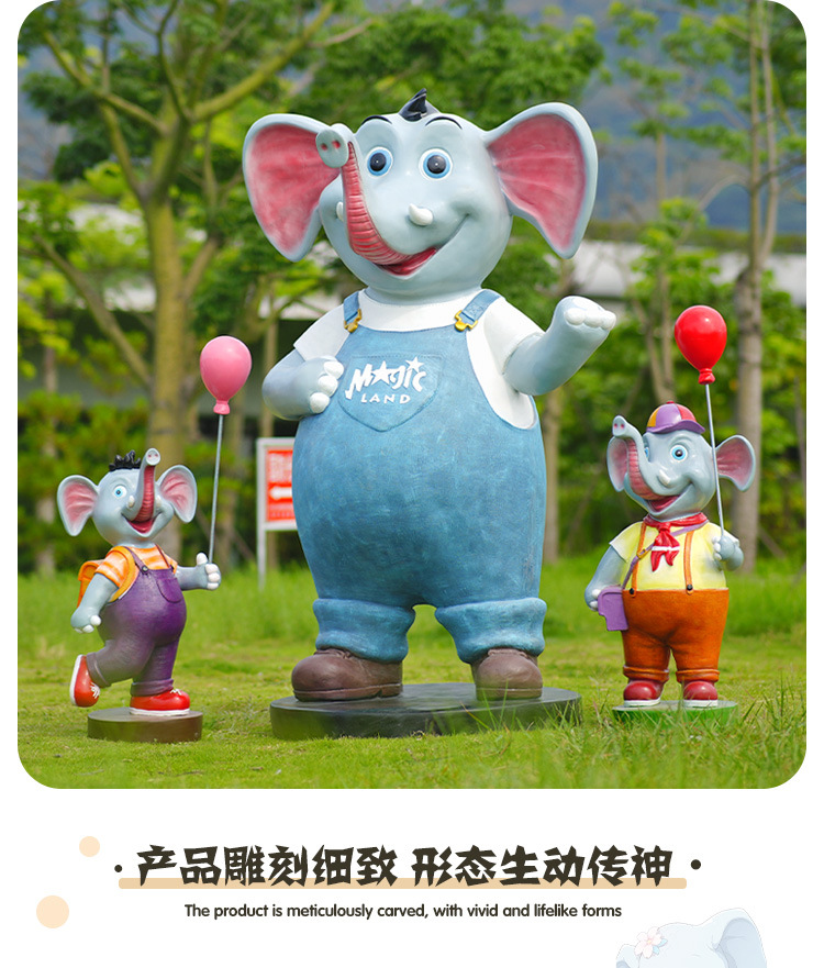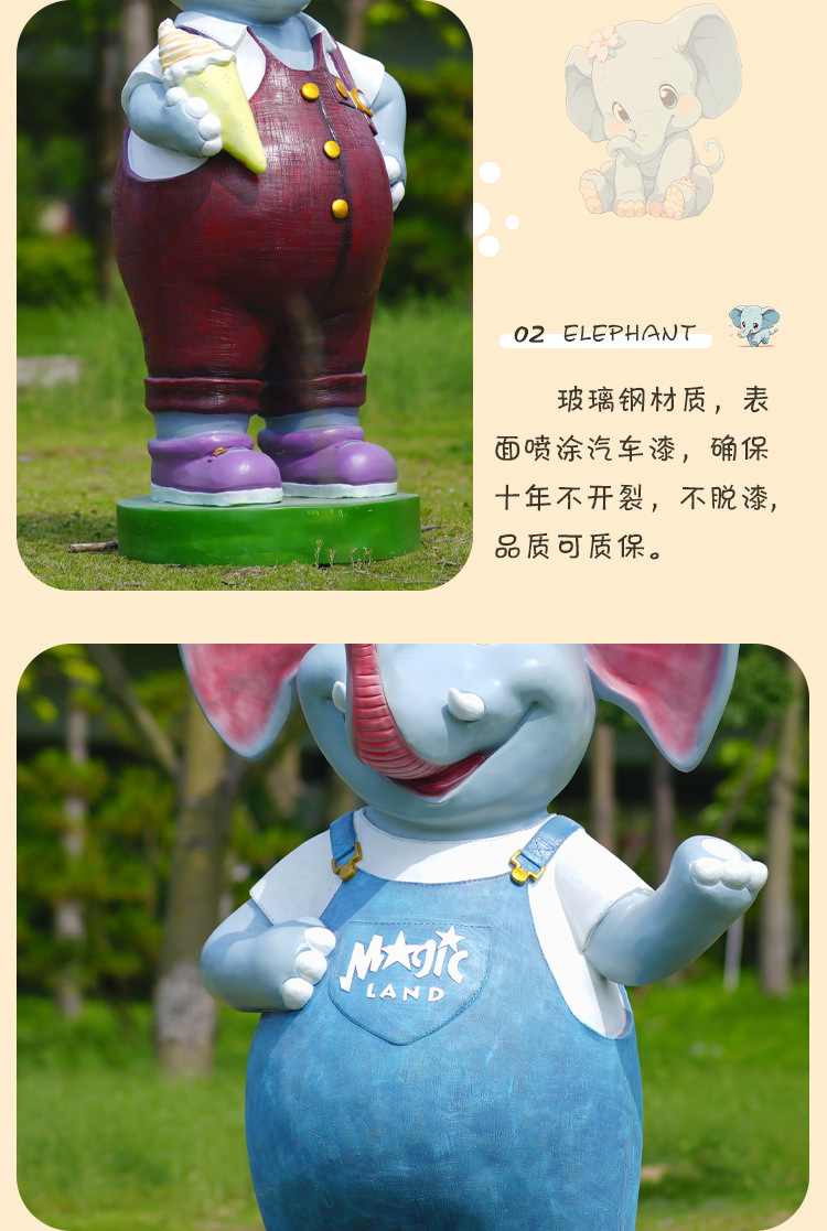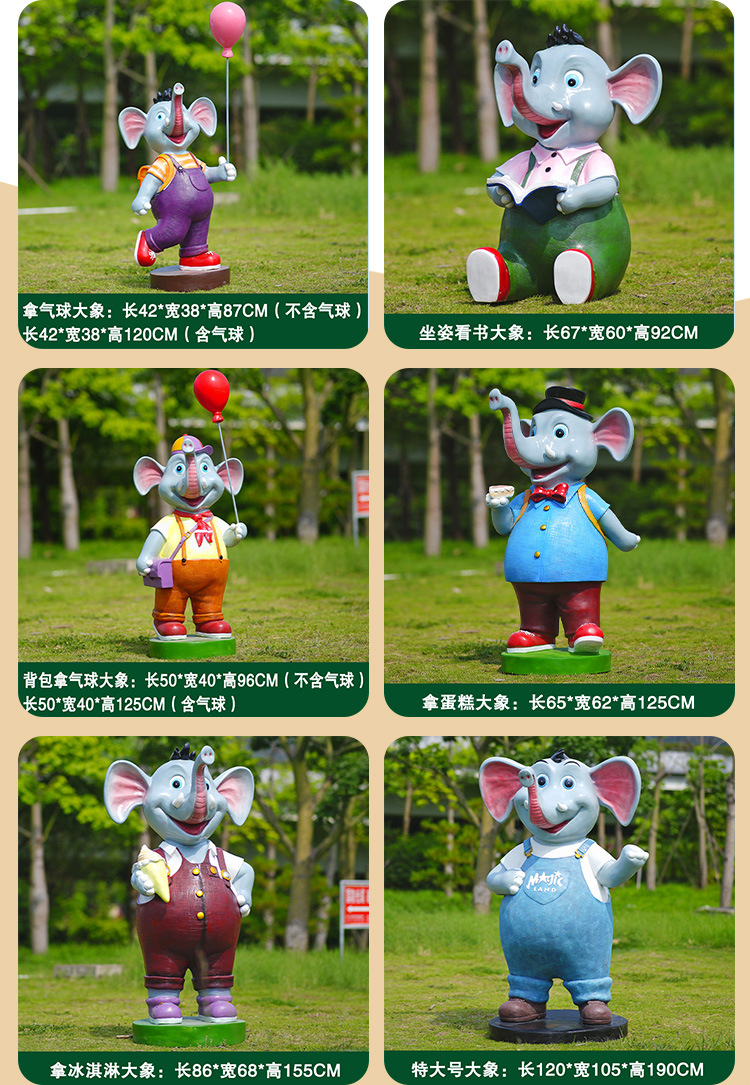 만화 동물 코끼리 유리 섬유 강화 플라스틱 조각 장식품 야외 유치원 공원 풍경 잔디 장식스토어 가기