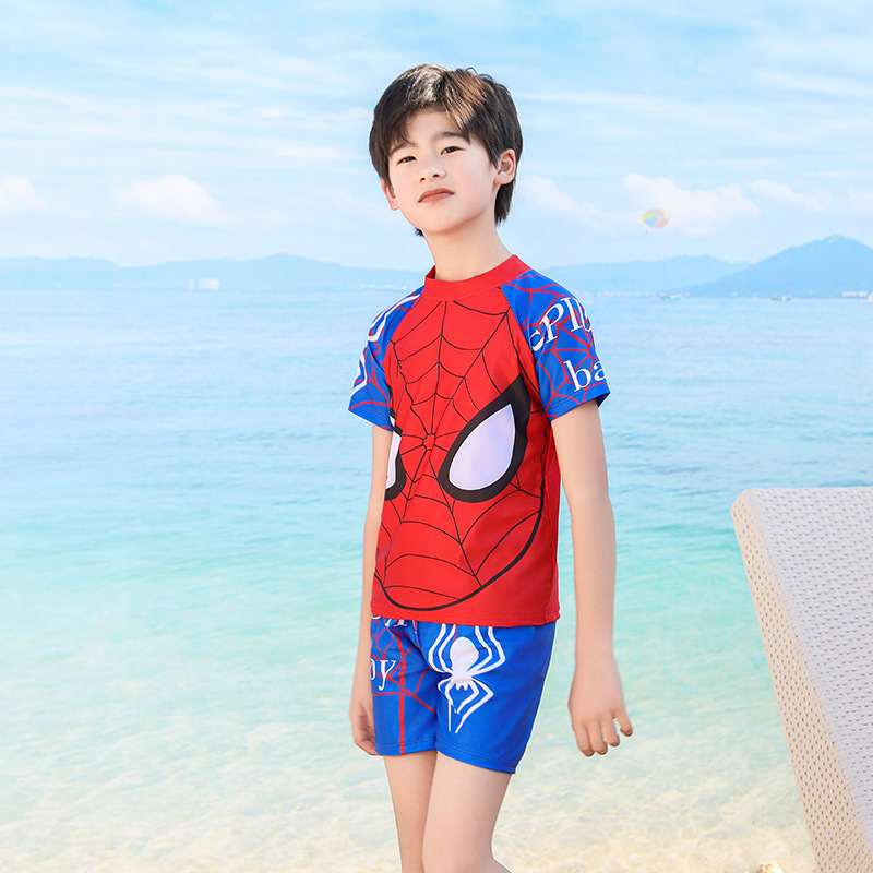 새로운 어린이 수영복 여름 소년 패션 만화 스파이더 맨 분할 중간 및 큰 어린이를위한 빠른 건조 전문 수영복