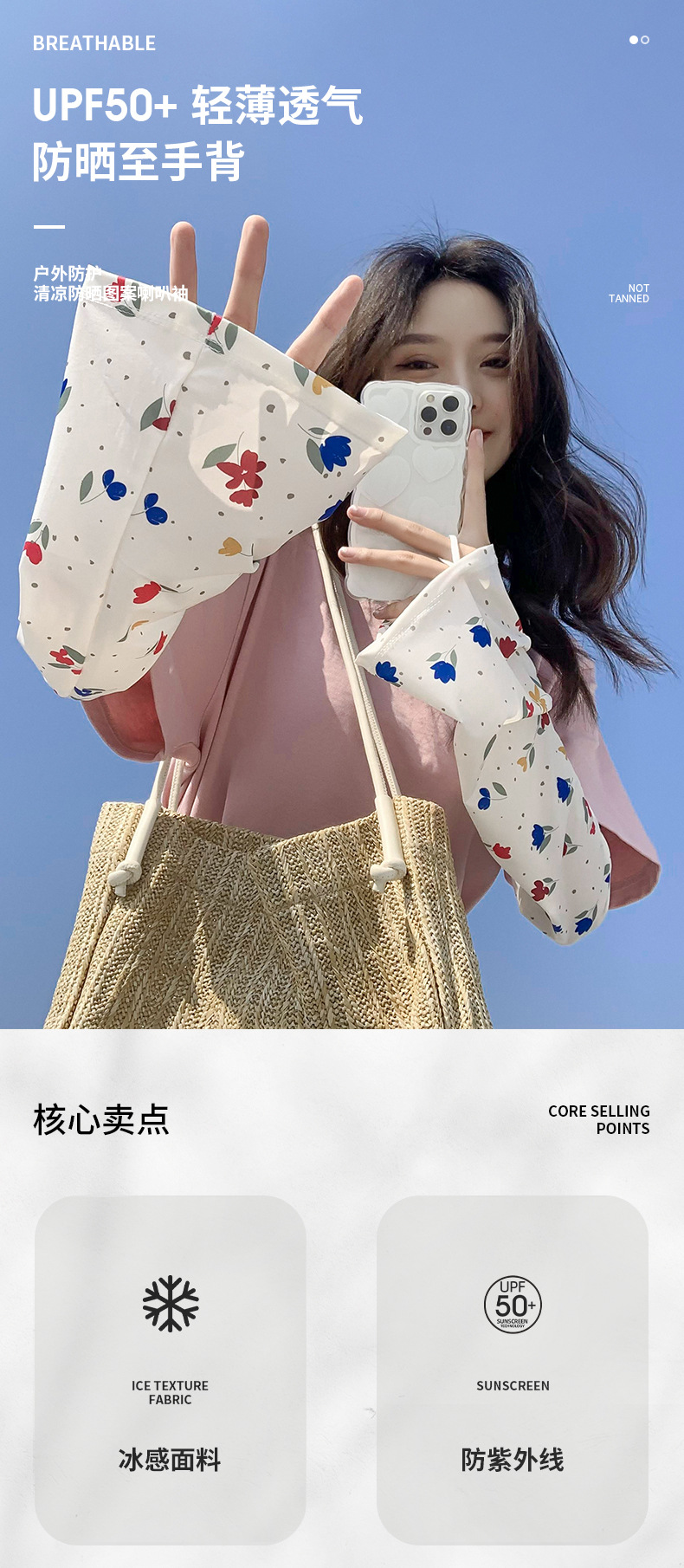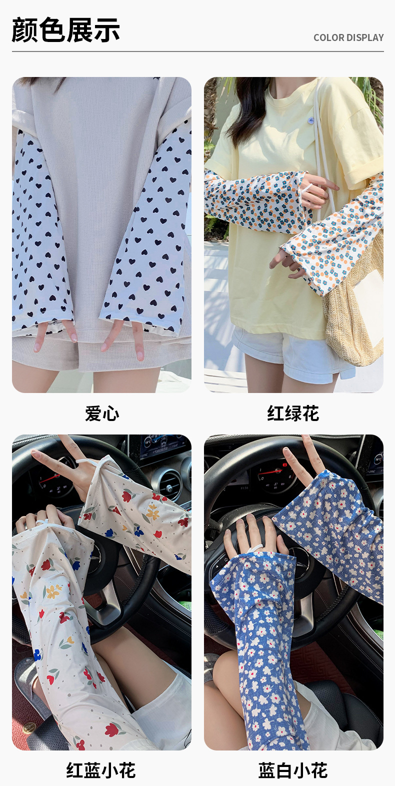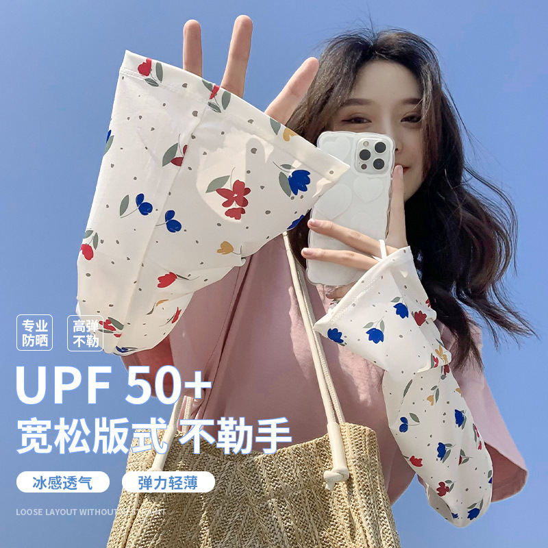 여름 얼음 소매 작은 꽃 귀여운 선스크린 소매 여성의 얼음 실크 뿔 소매 야외 승마 산 UV 보호 손가락스토어 가기