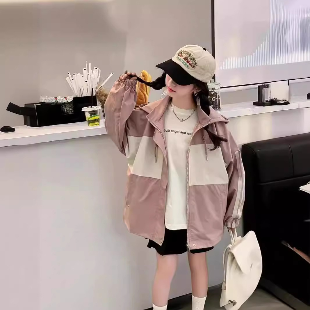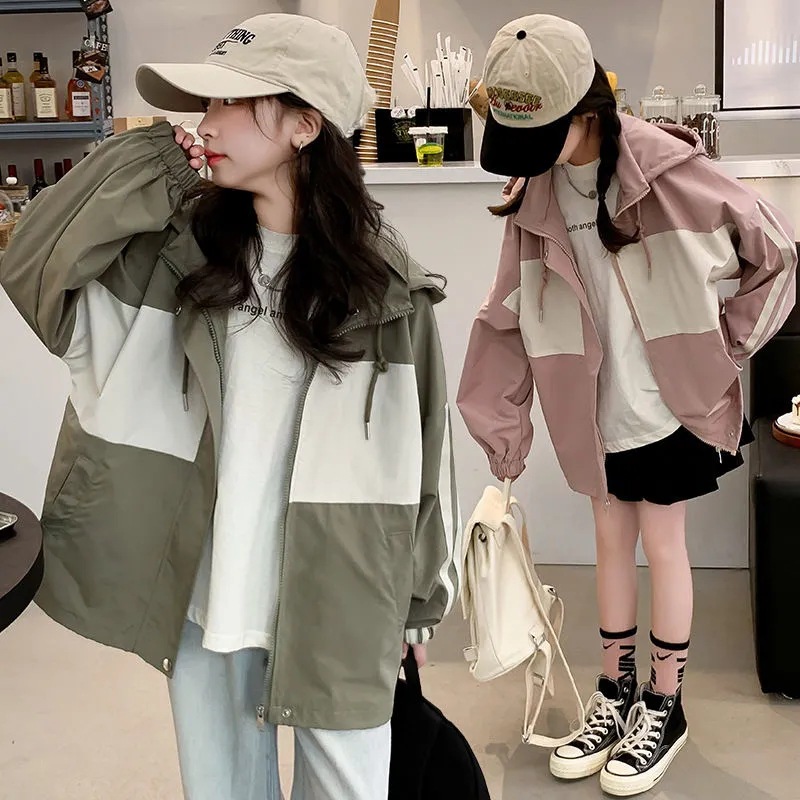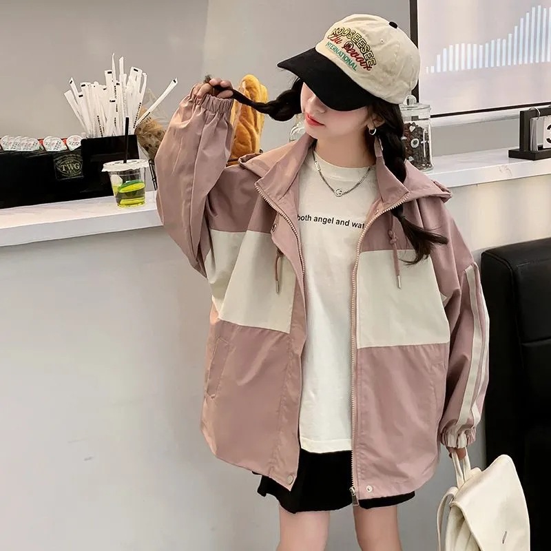 소녀 러쉬 자켓 봄과 가을 2024 새로운 여성 아기 외국 스타일 유행 캐주얼 어린이 스포츠 탑스토어 가기