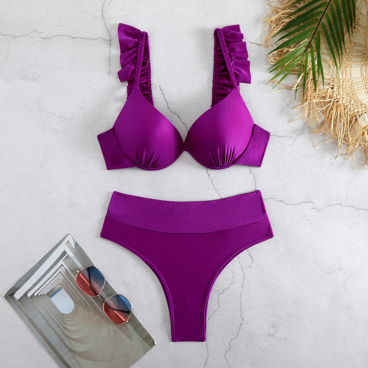 단색 높은 허리 비키니 국경 대외 무역 분할 수영복 2024 새로운 섹시한 AliExpress 아마존 비키니스토어 가기