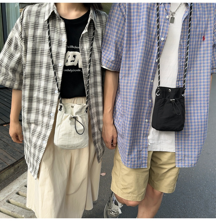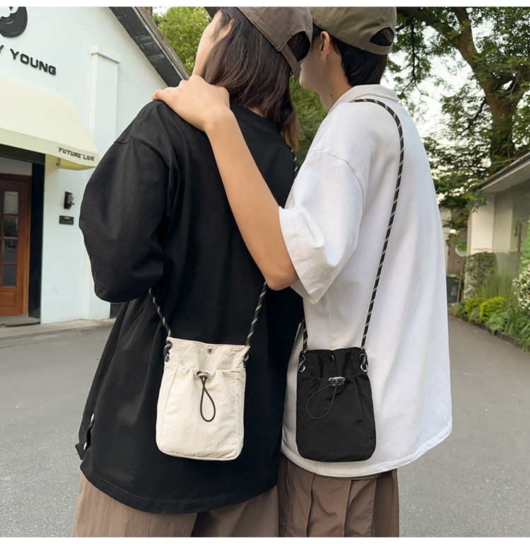 여름 여름 미니 작은 가방 남자와 여자의 2024 새로운 패션 드로우 스트링 크로스 바디 휴대 전화 가방 5 색 어깨 키 가방스토어 가기