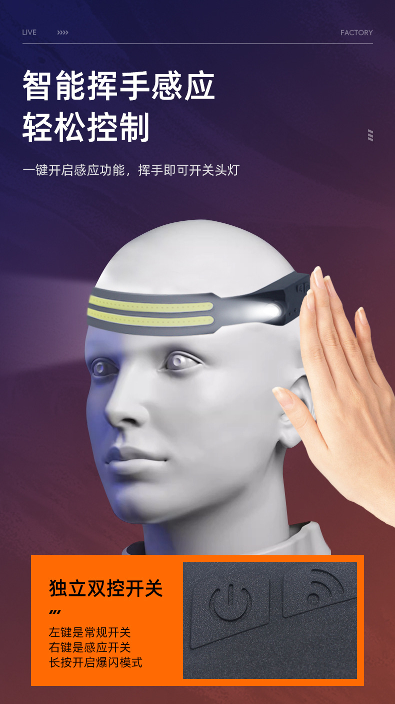 长按开关键单条COB+xpe射灯同时爆闪