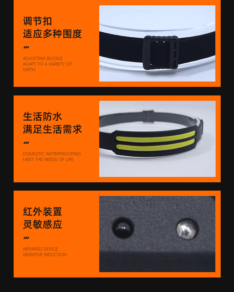 三条cob白光:高档1000流明 低档360流明