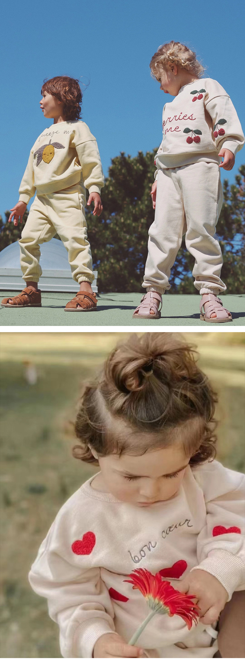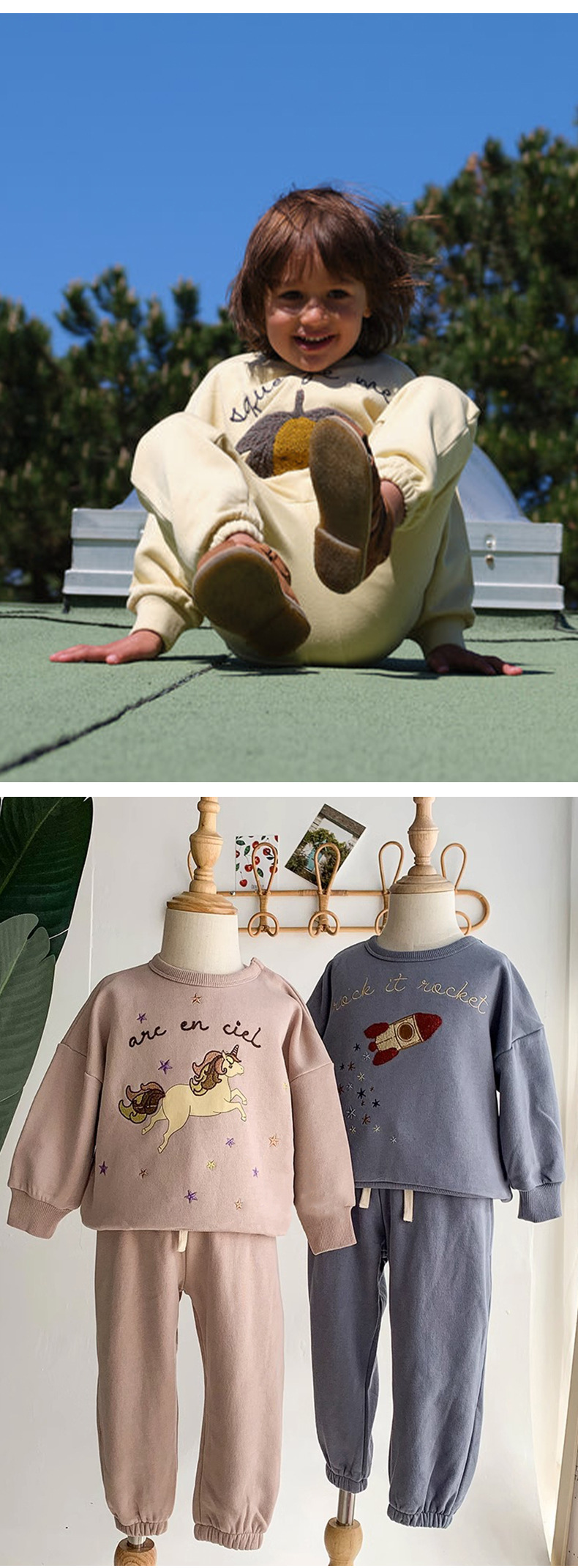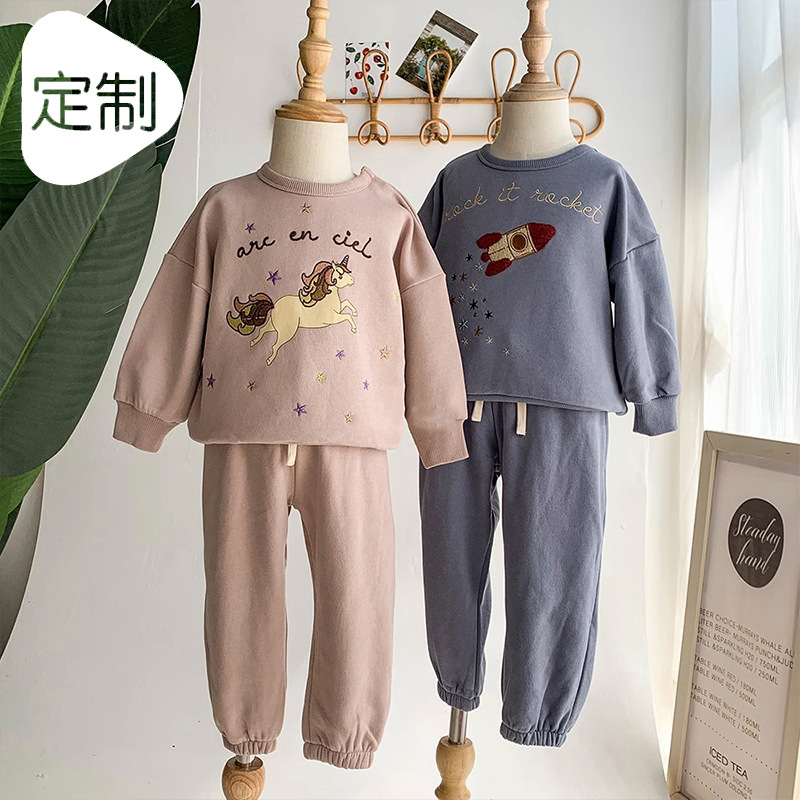 맞춤형 아동용 스웨트셔츠와 스웨트팬츠, 귀여운 프린트의 얇은 벨벳 남녀 아기 가을 옷과 긴 바지 세트스토어 가기