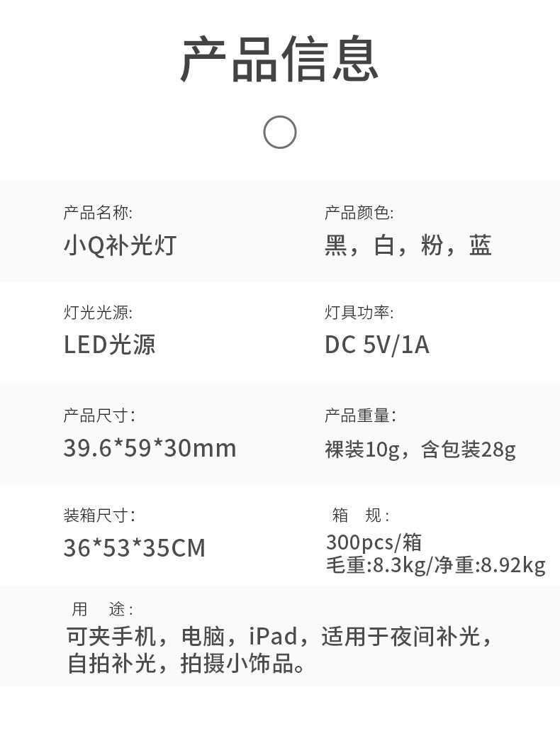 产品名称:小Q手机补光灯