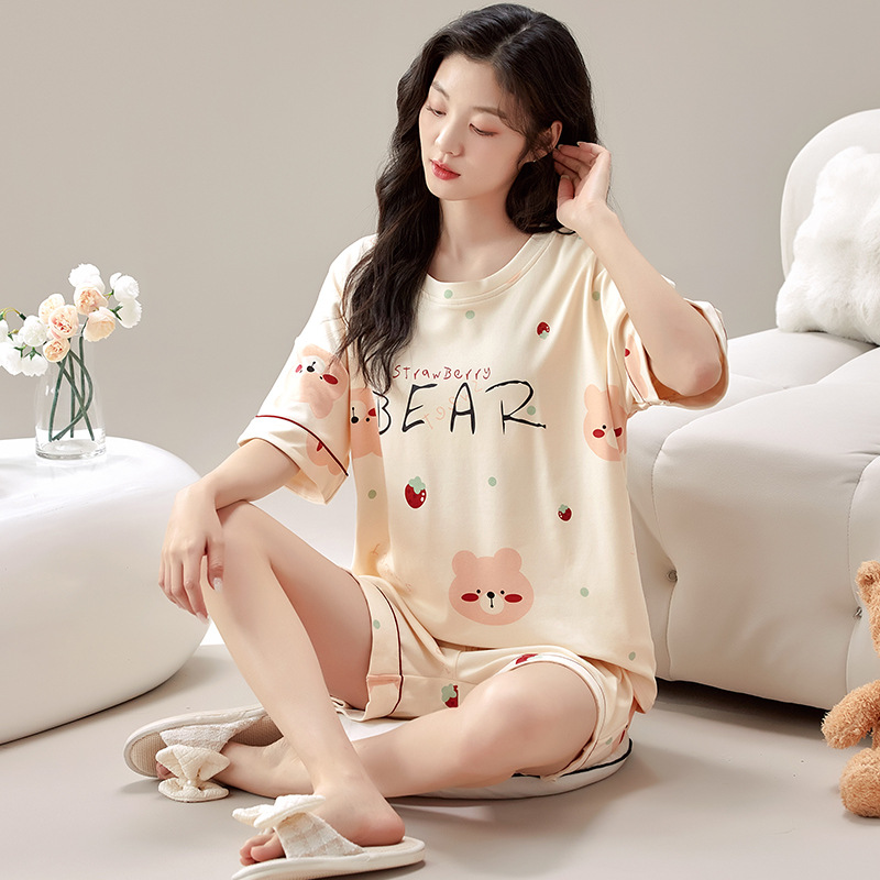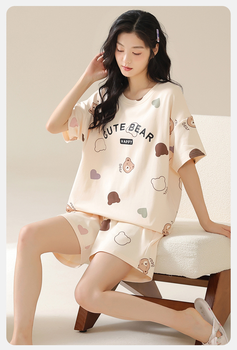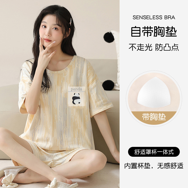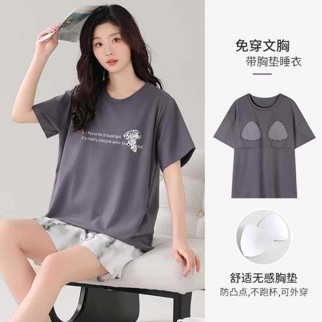가슴 패드가 있는 여름 반팔 잠옷, 외출복으로도 착용 가능한 홈웨어 투피스 세트, 2025년 신상 여름 만화 소녀 스타일스토어 가기
