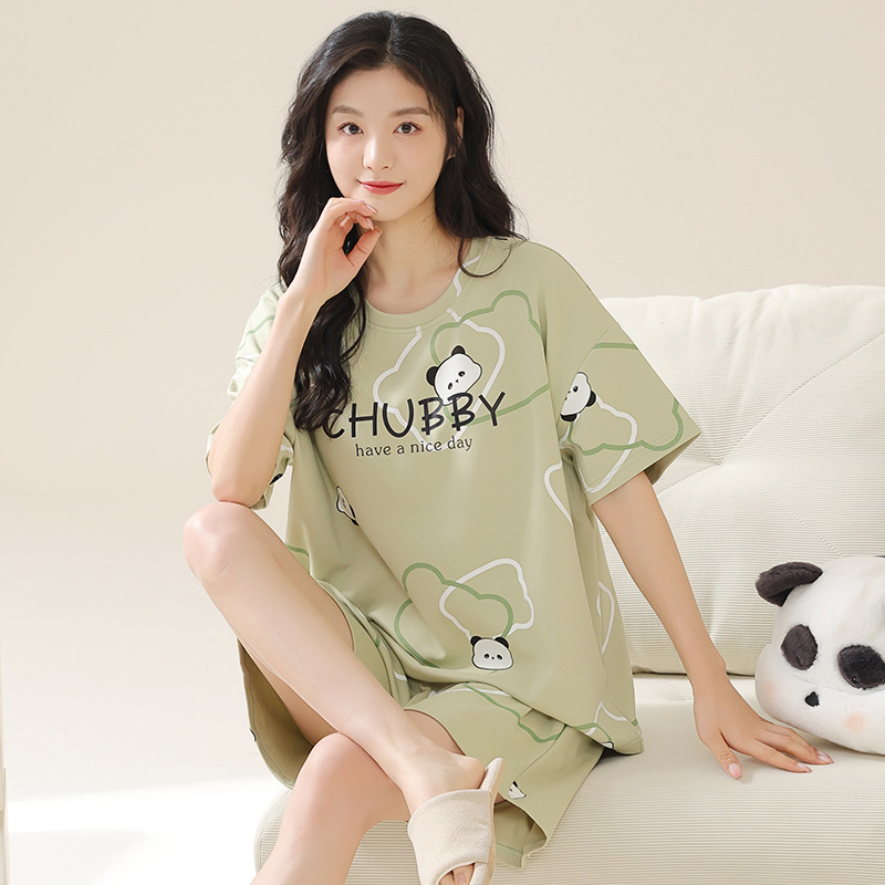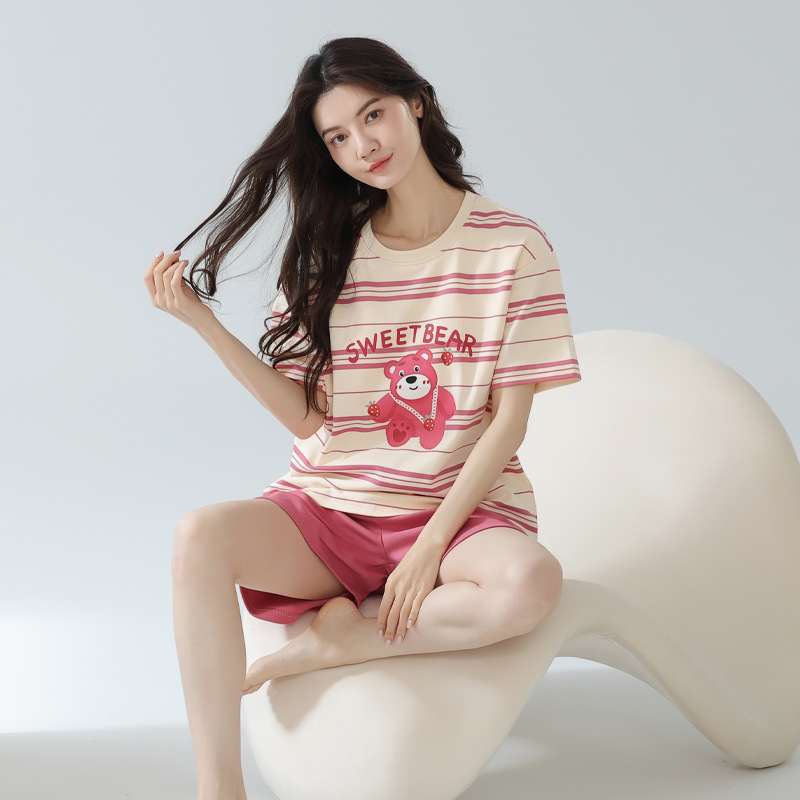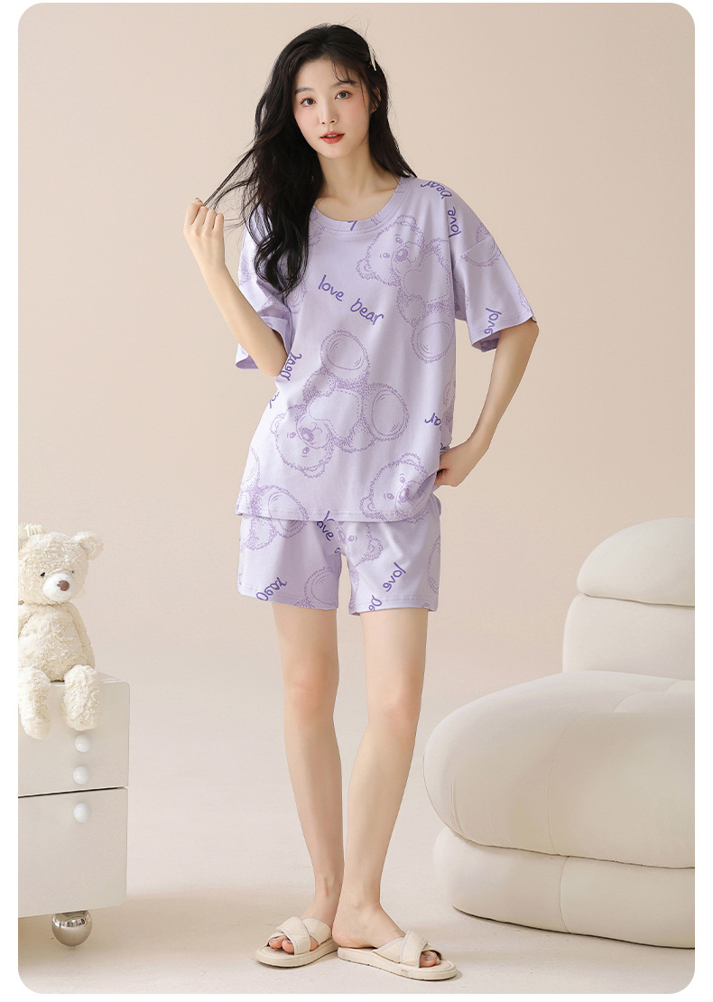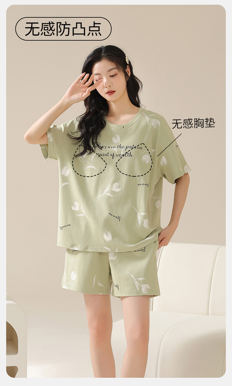 가슴 패드가 있는 여름 반팔 잠옷, 외출복으로도 착용 가능한 홈웨어 투피스 세트, 2025년 신상 여름 만화 소녀 스타일스토어 가기