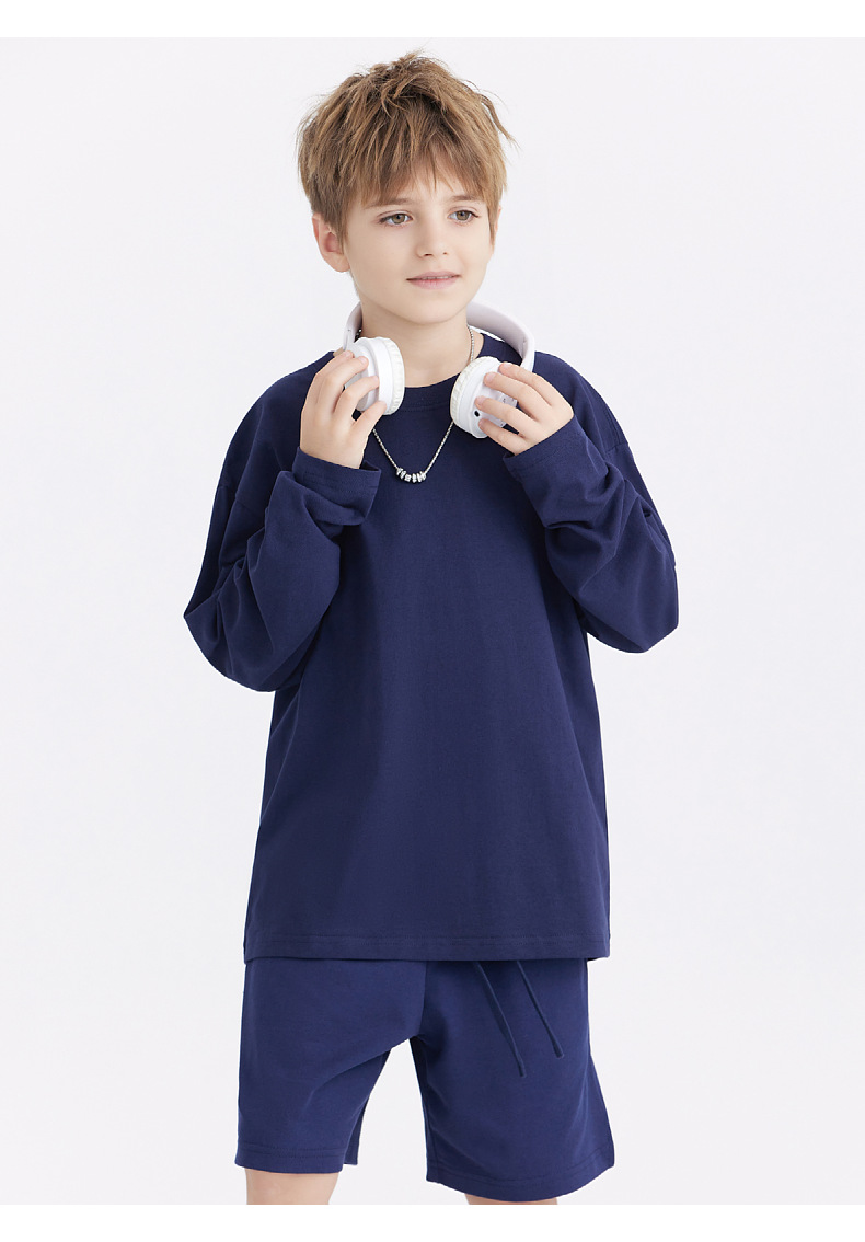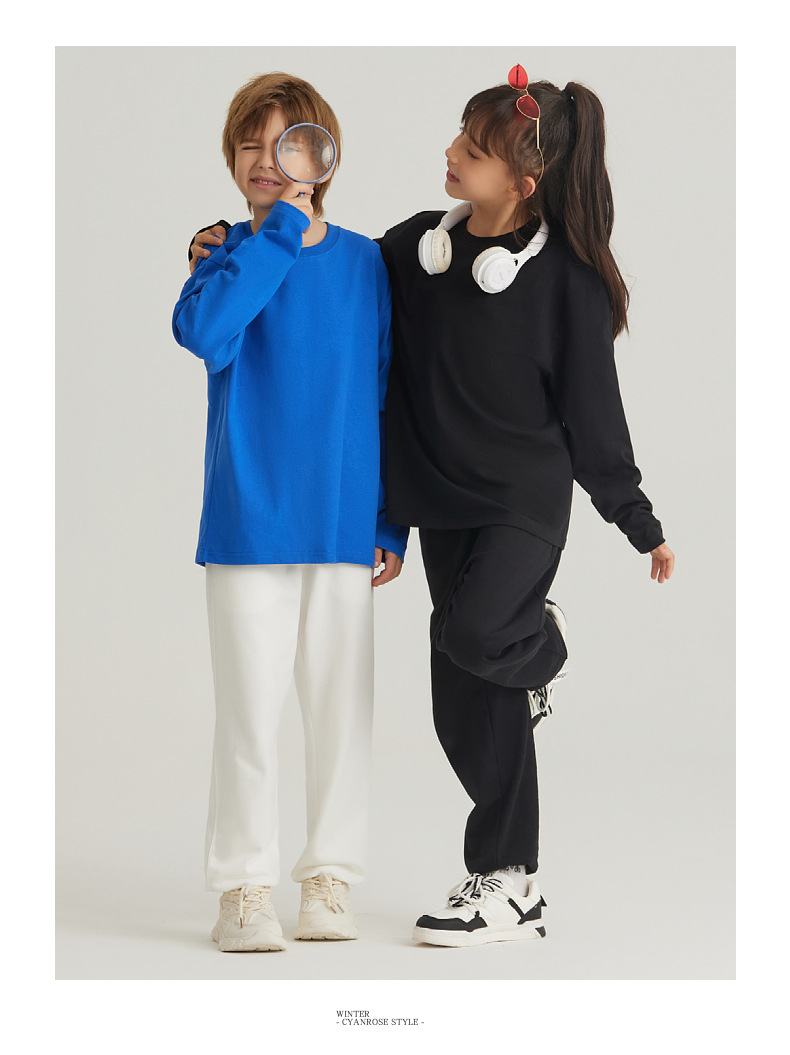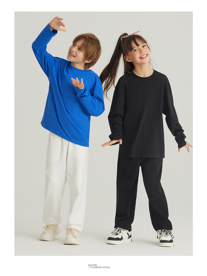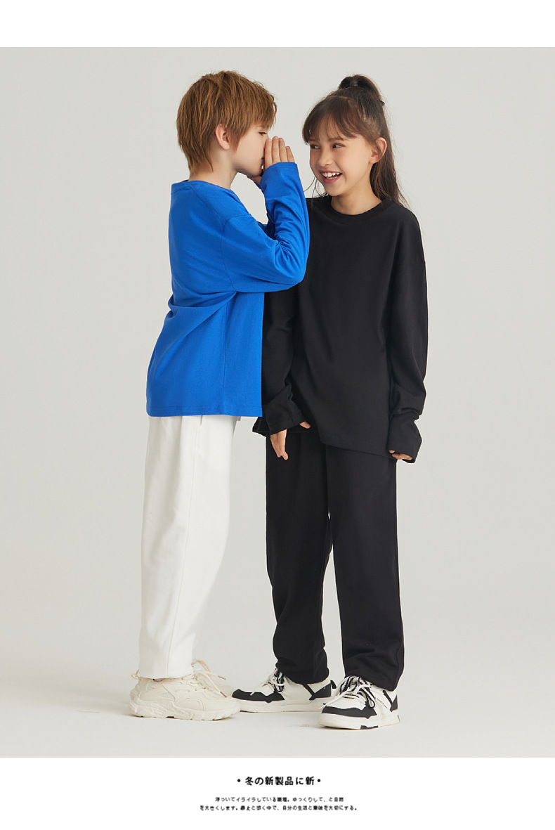 LVLV 어린이 세트 | 무거운면 긴 소매 티셔츠 봄과 가을 바닥 셔츠 코튼 테리 스포츠 바지 세트 조수스토어 가기