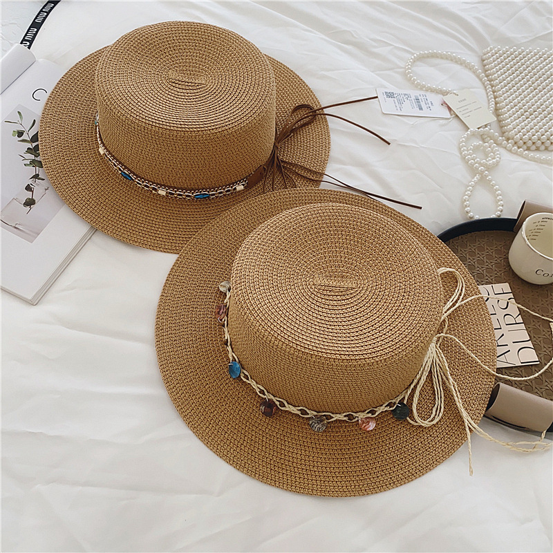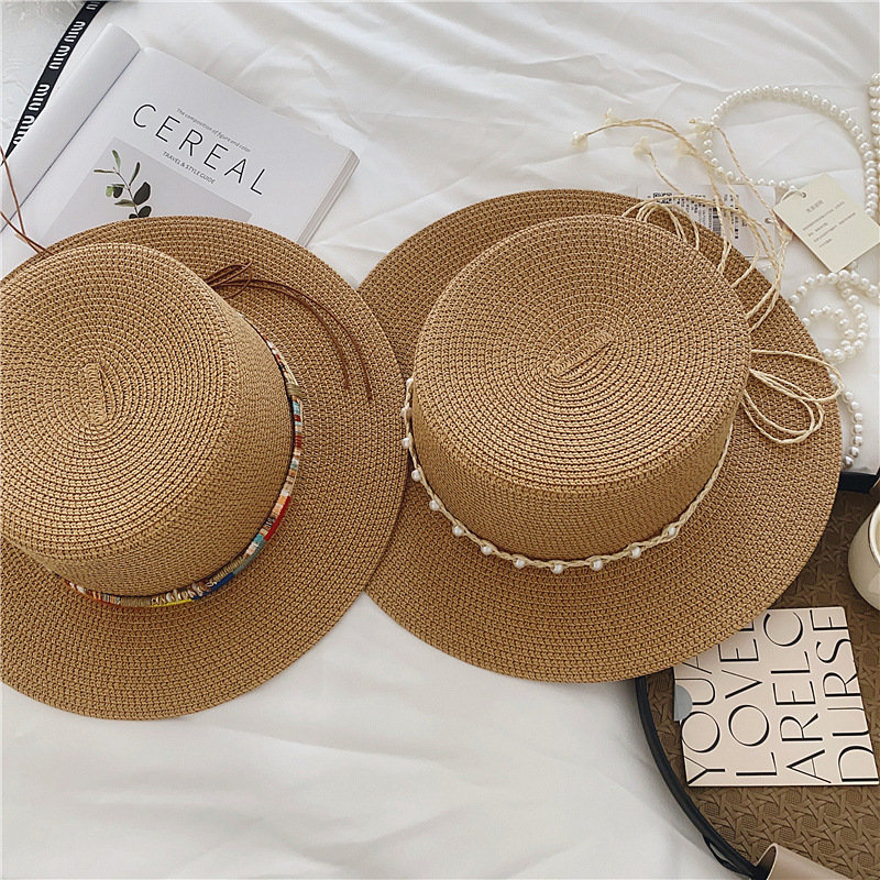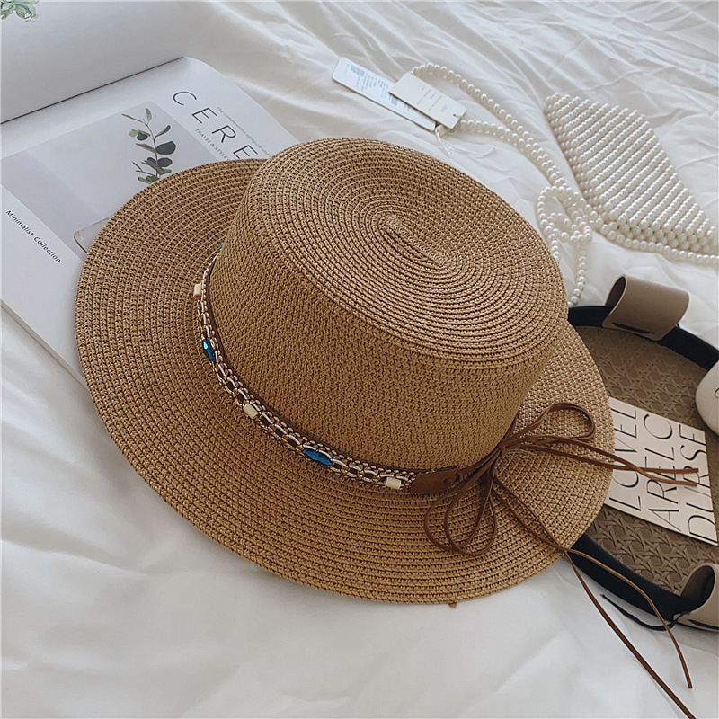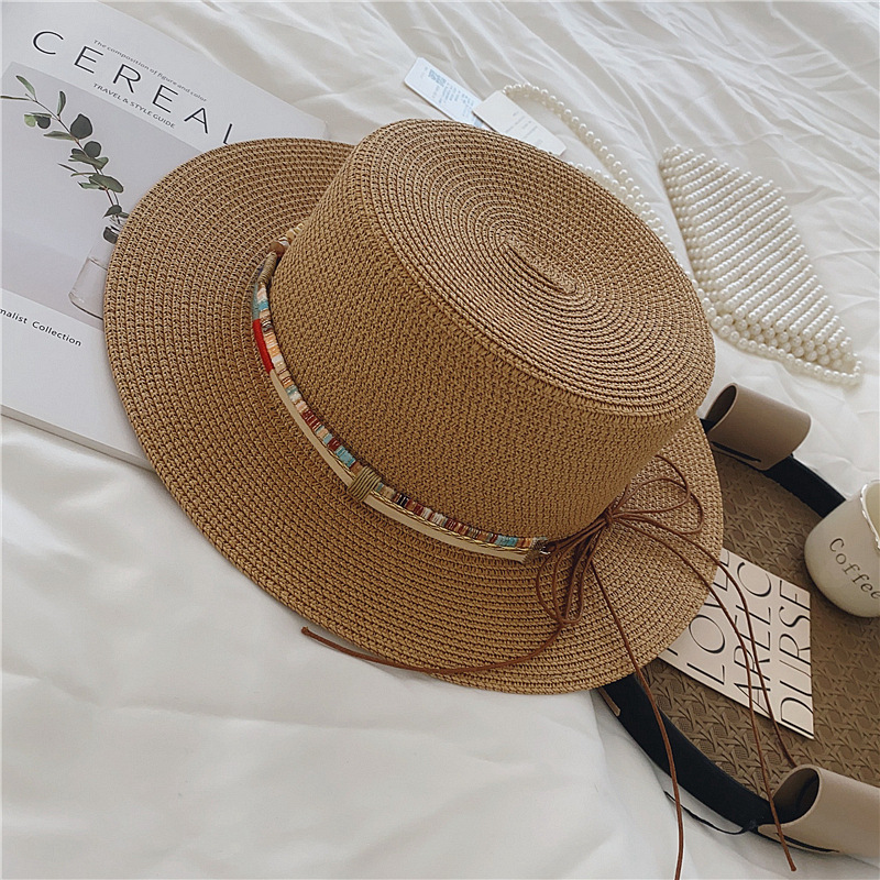 새로운 원래 민족 스타일 밀짚 모자 여성의 봄과 여름 해변 여행 차양 모자 복고풍 자외선 차단제 국경 모자