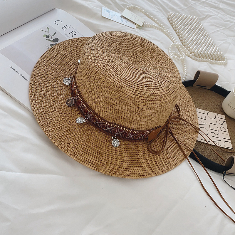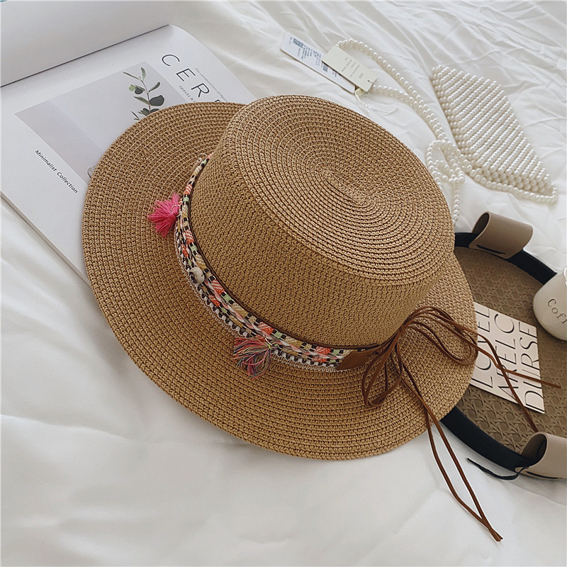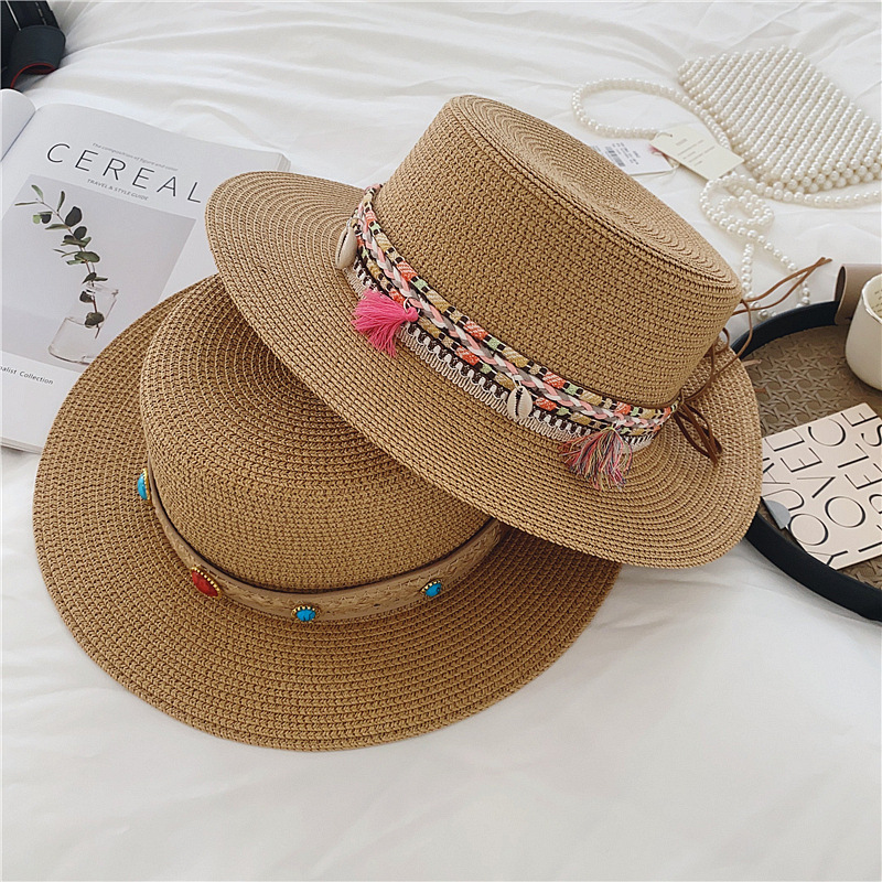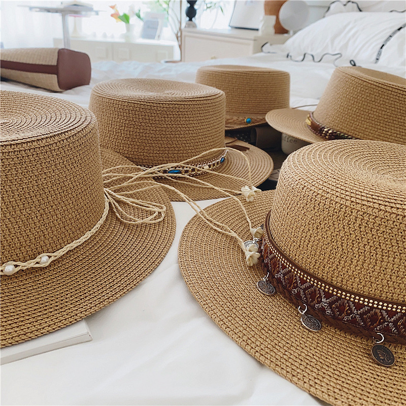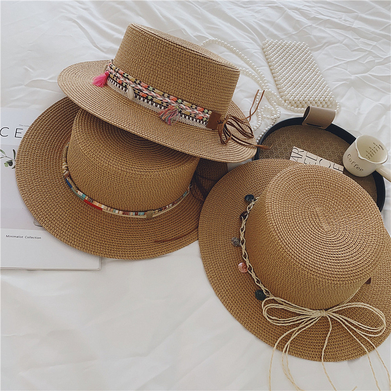 새로운 원래 민족 스타일 밀짚 모자 여성의 봄과 여름 해변 여행 차양 모자 복고풍 자외선 차단제 국경 모자스토어 가기