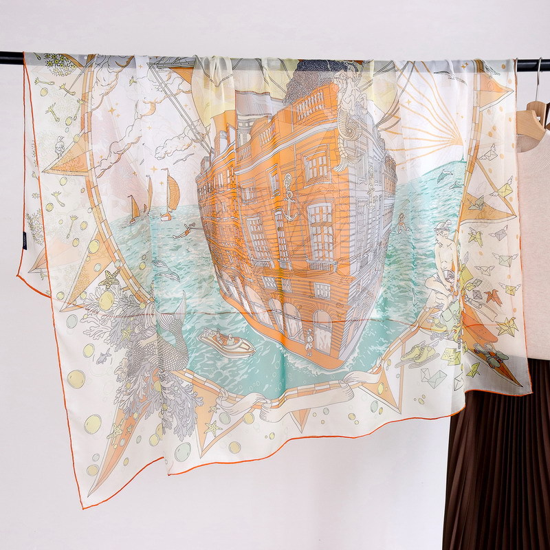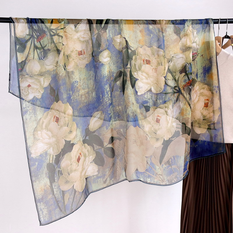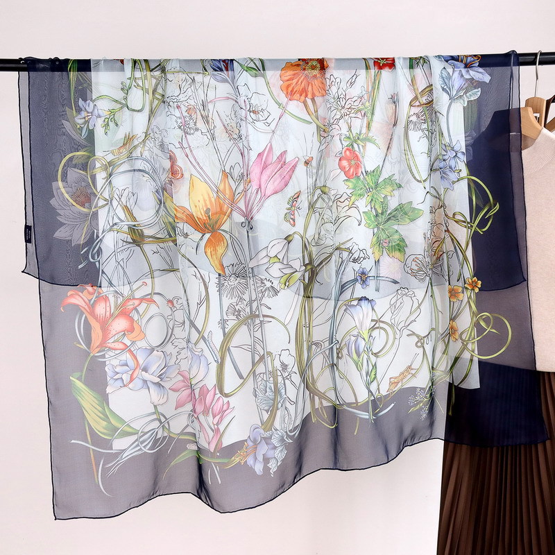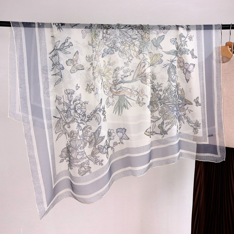나비 꽃 샤넬 스타일 실크 쉬폰 대형 스퀘어 실크 스카프 실크 스카프 우아한 여성의 여름 선 스크린 목도리