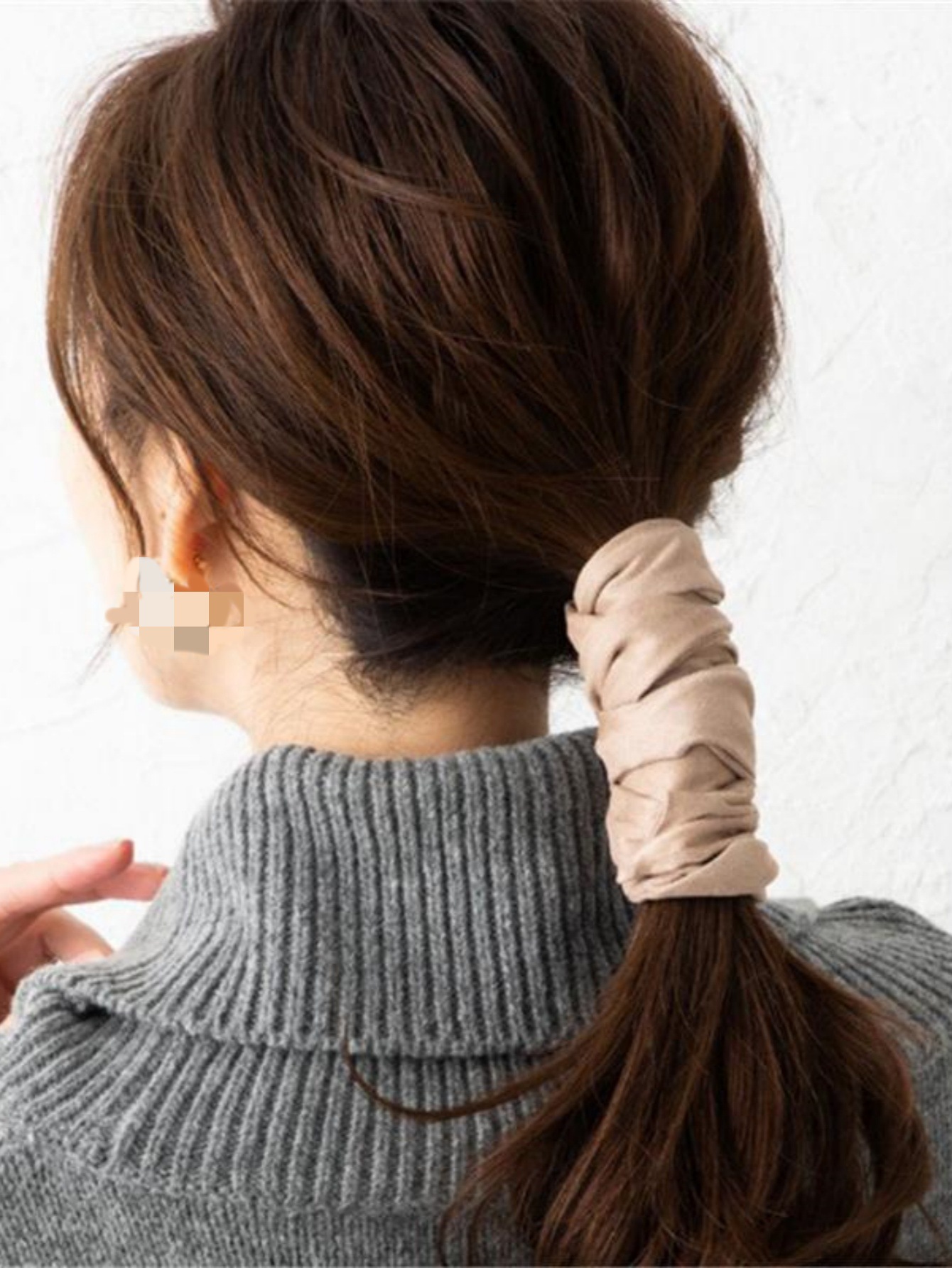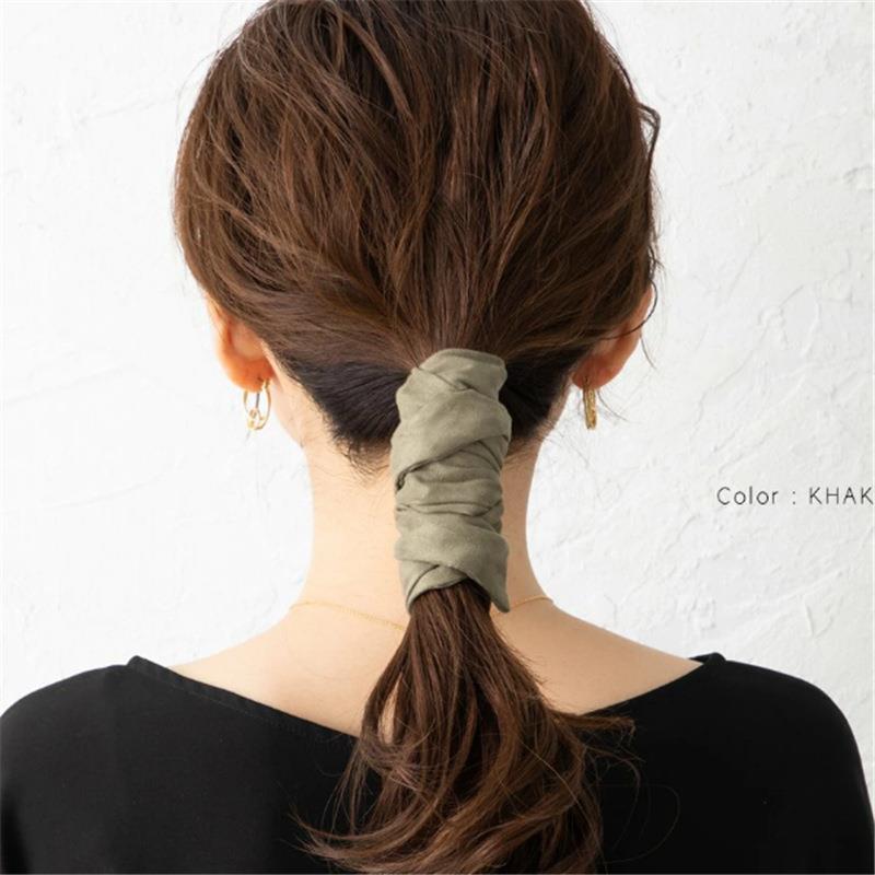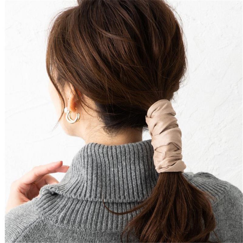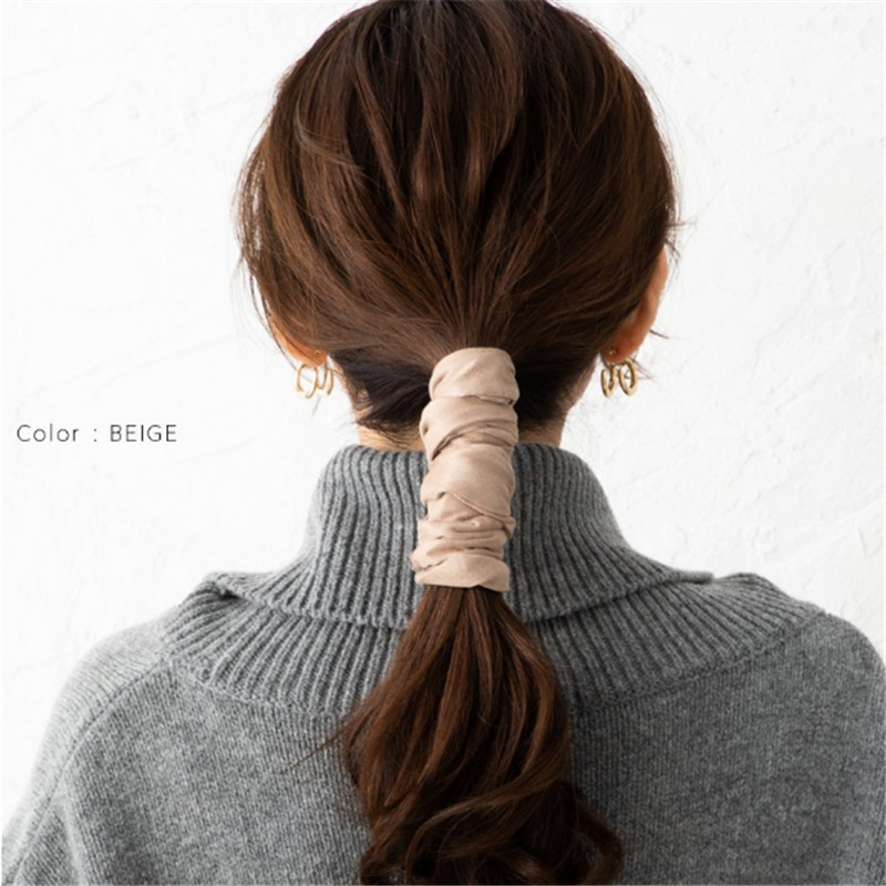일본 스타일 빈티지 단색 원단 철 와이어 헤어 로프 여성용 헤어 타이 와이드 브레드 스웨이드 헤어 밴드 낮은 포니 테일