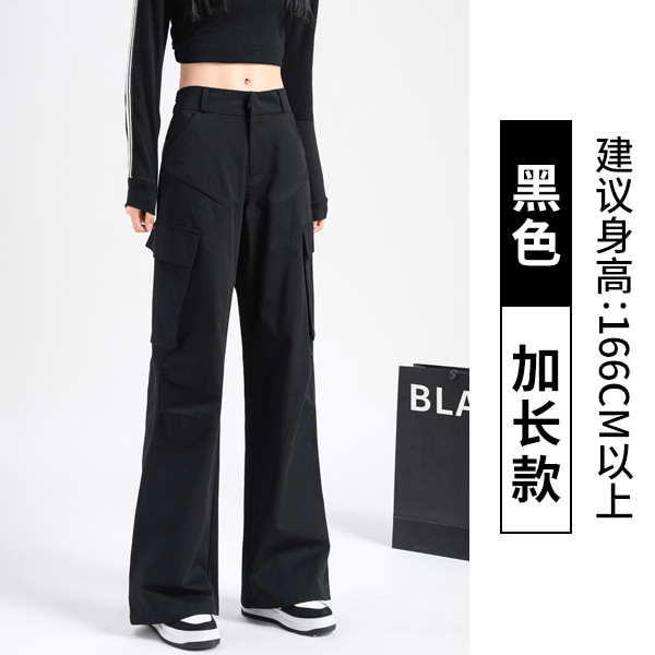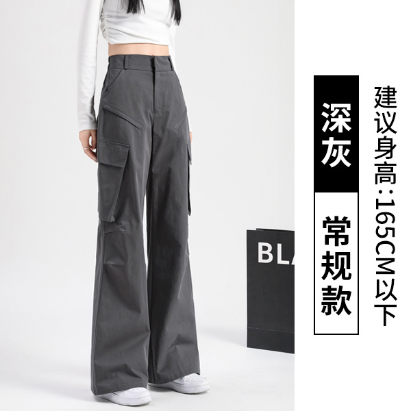 주의 바지 여자의 봄과 가을 2024 새로운 도착 회색 미국 스타일 레트로 큰 포켓 높은 허리 스포츠 캐주얼 와이드 다리 바지