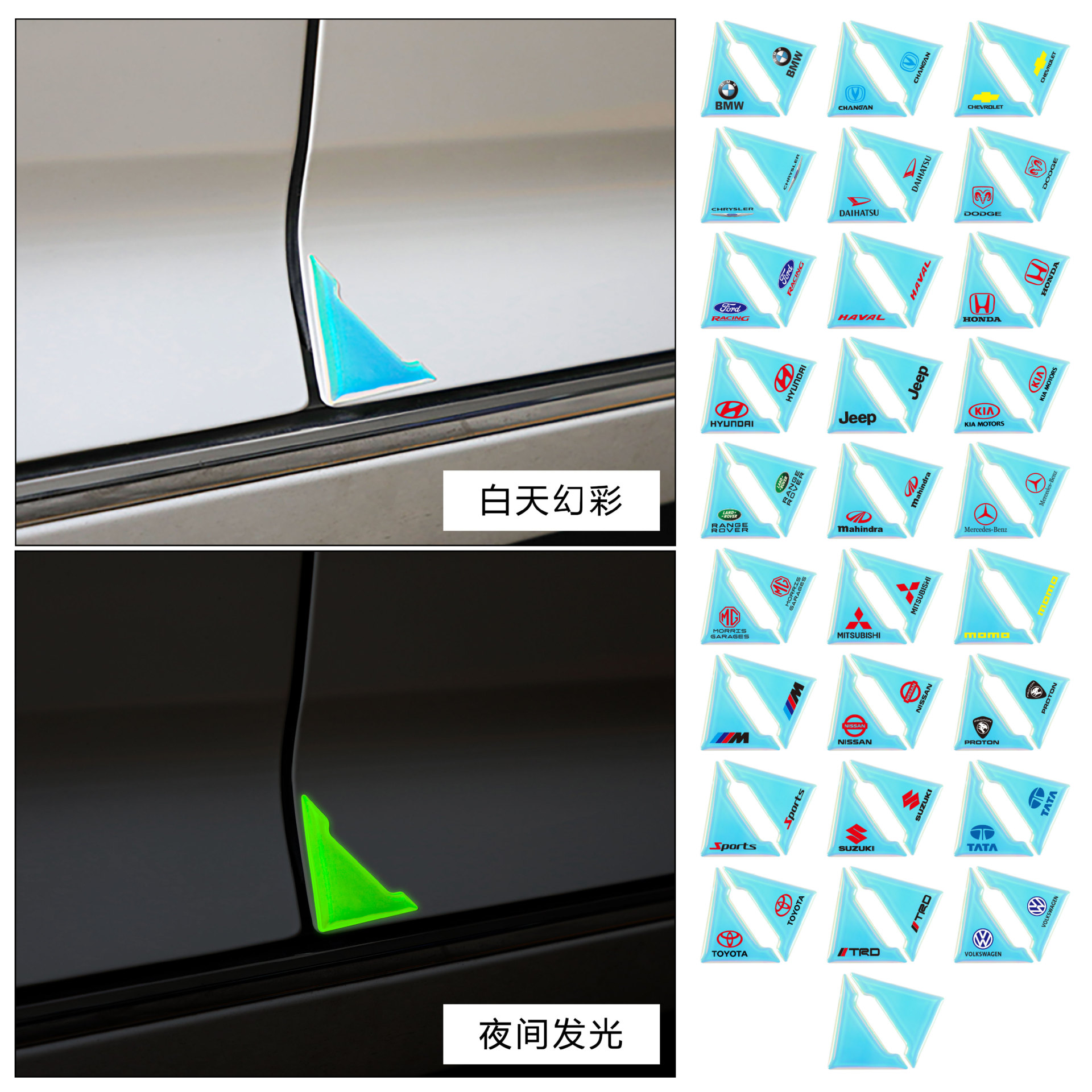 자동차 다채로운 빛나는 문 코너 충돌 방지 스티커 형광 스티커 안티 스크래치 장식 다채로운 반사 스티커 안티 스크래치 장식 스티커스토어 가기
