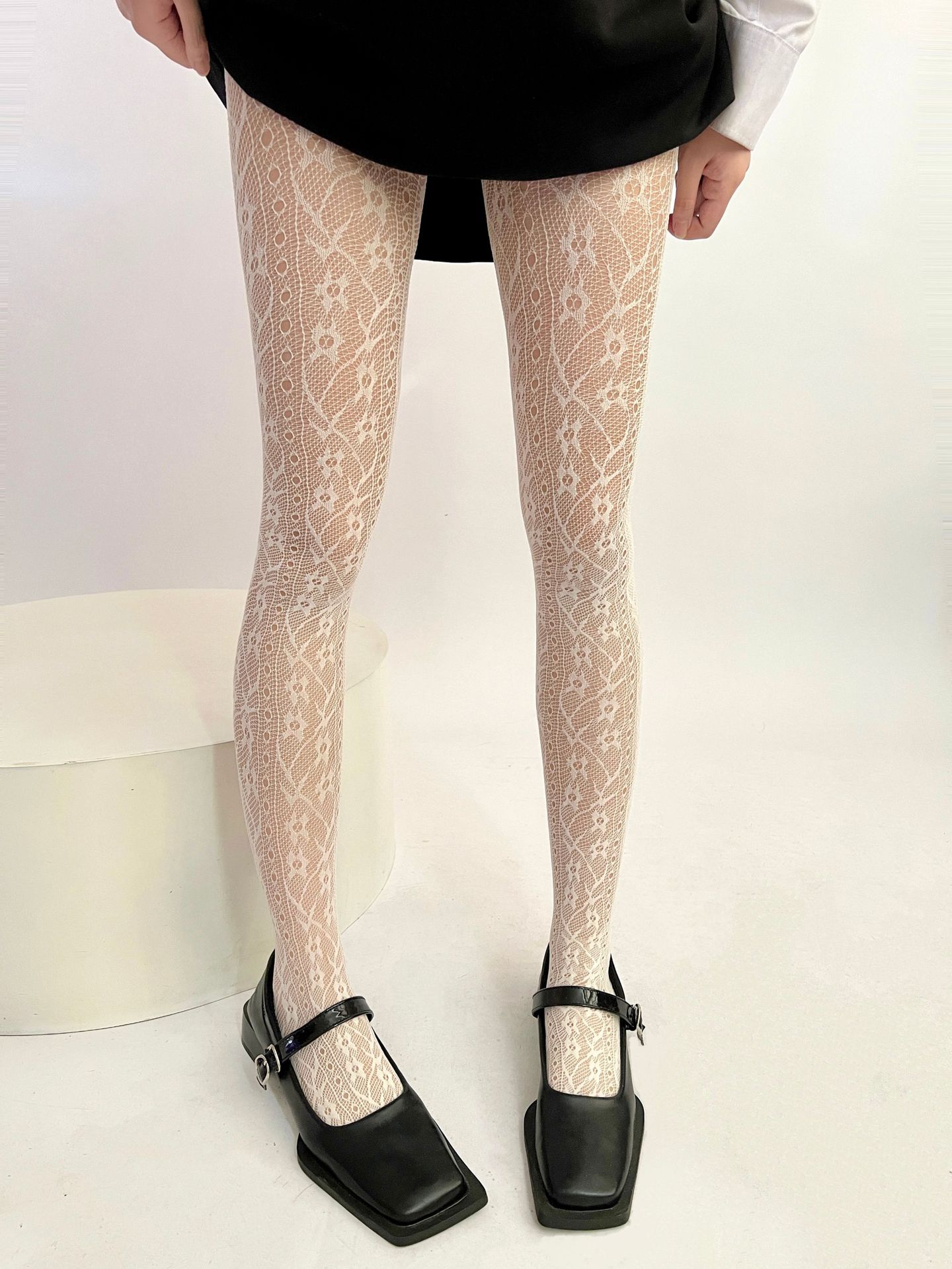 봄과 여름 2024 새로운 프랑스 스타일 복고풍 꽃 덩굴 수직 패턴 할로우 아웃 틈새 컬러 실크 스타킹 그물 스타킹 자카드 팬티 스타킹 여성스토어 가기