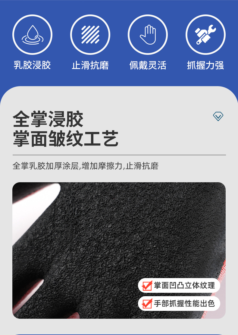 중유 장갑 라텍스 주름 노동 장갑 내마모성 미끄럼 방지 탄성 장갑 공장 작업 장갑 제조 업체 스트레이트 헤어