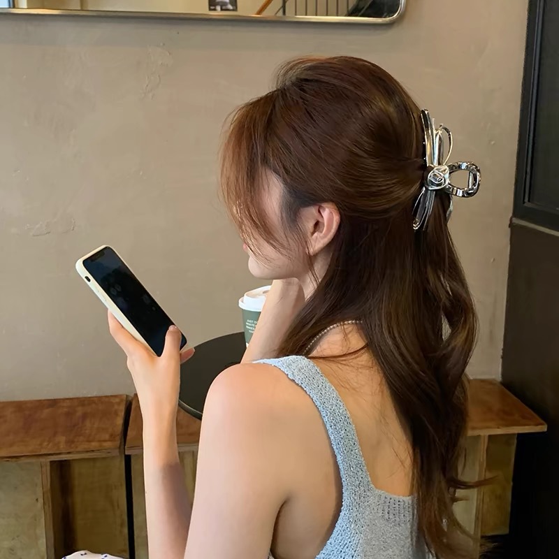 실버 로즈 플라워 펄 그랩 클립 여성용 하이 엔드 헤어 클립 헤드 메탈 상어 클립 헤어 액세서리 헤드웨어