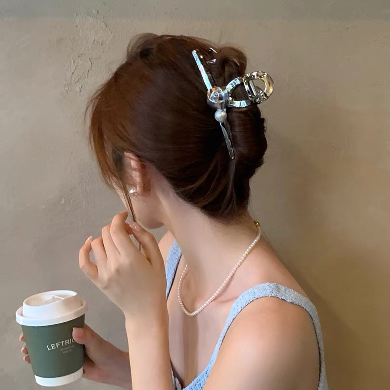 실버 로즈 플라워 펄 그랩 클립 여성용 하이 엔드 헤어 클립 헤드 메탈 상어 클립 헤어 액세서리 헤드웨어스토어 가기