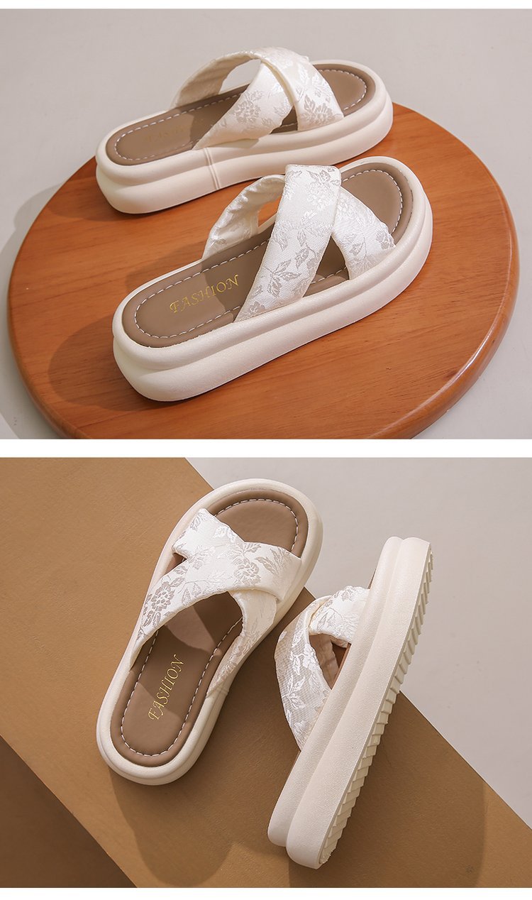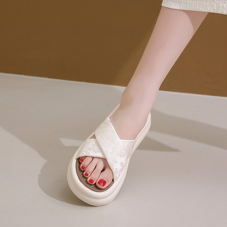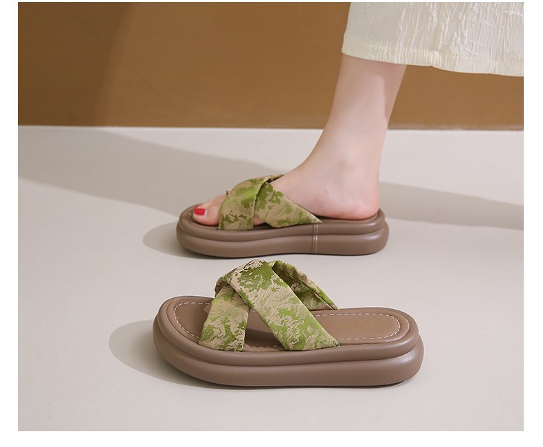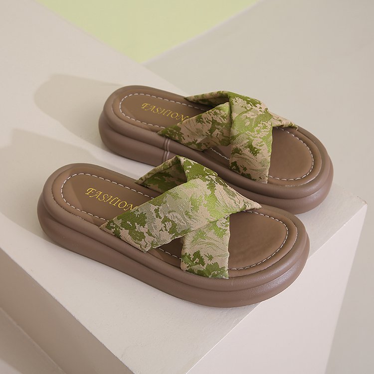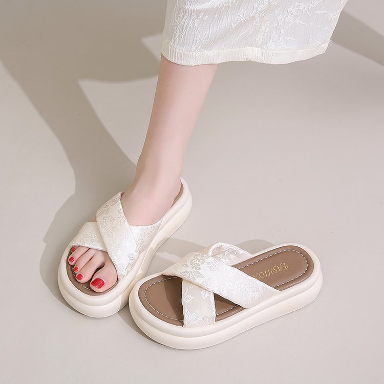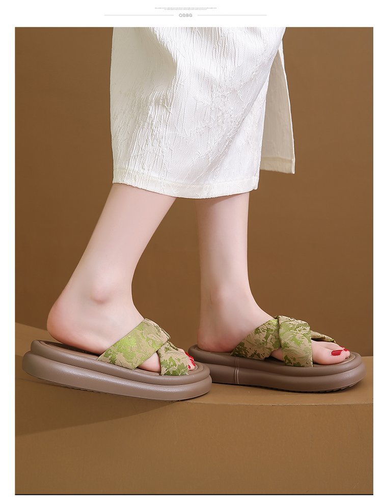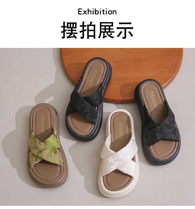 작은 샤넬 스타일 두꺼운 바닥 슬리퍼 여성 2024 년 여름 새로운 스타일 국가 스타일 유행 외부 착용 교차 샌들과 슬리퍼