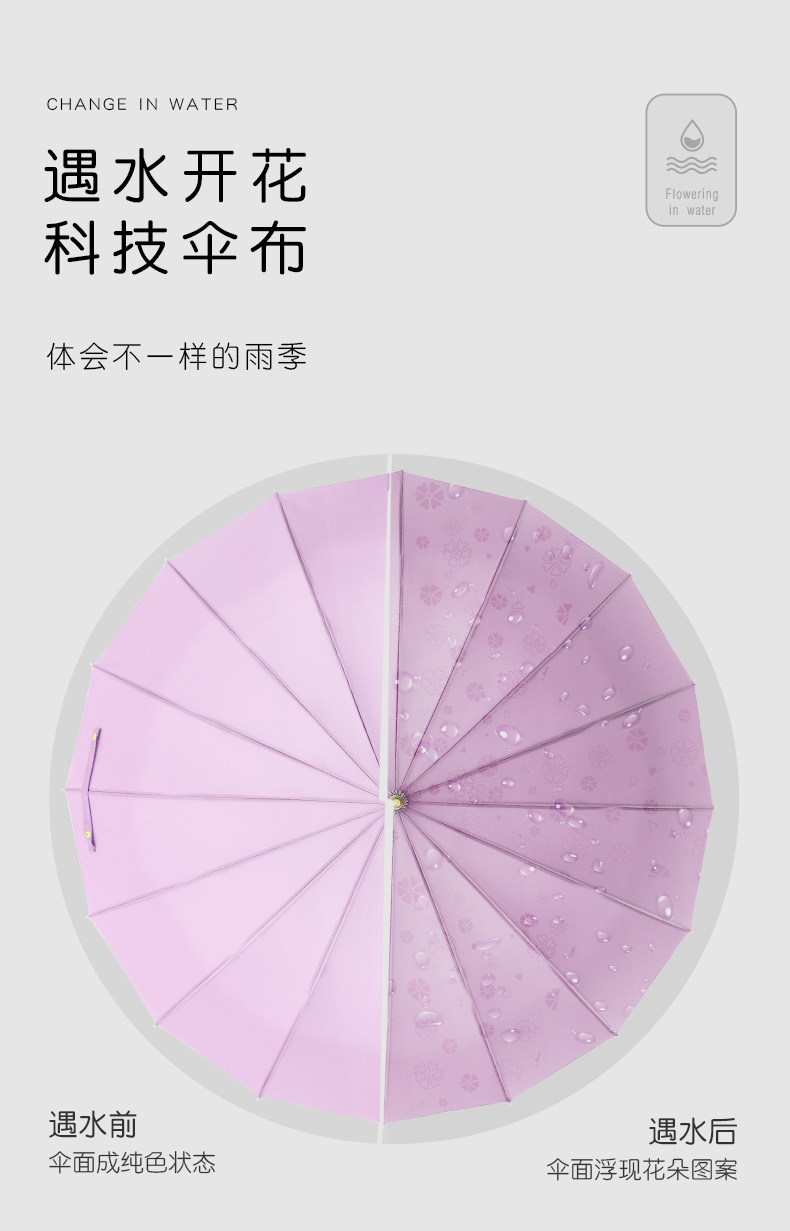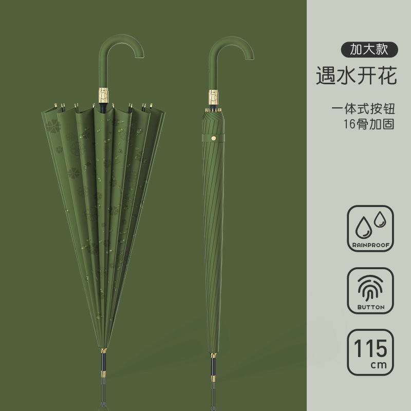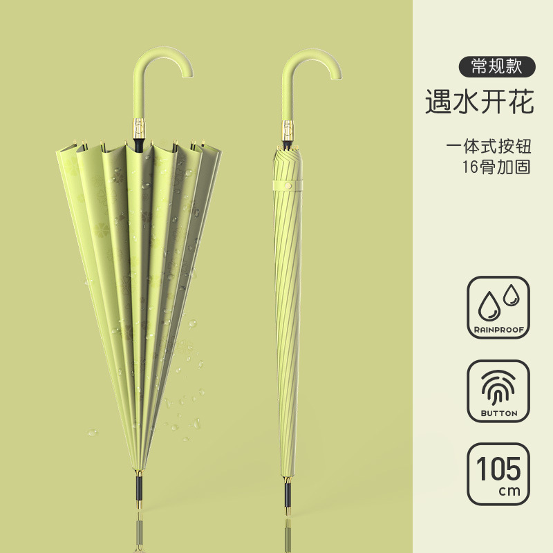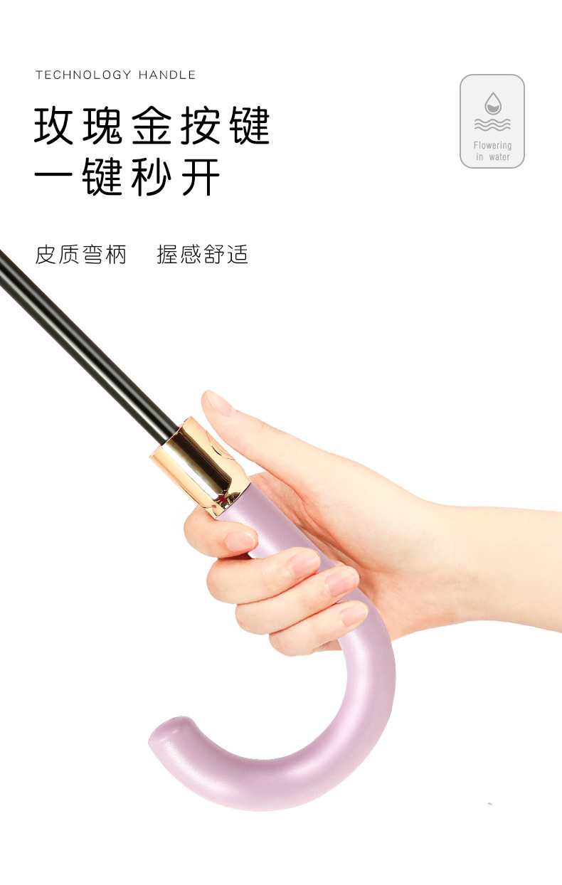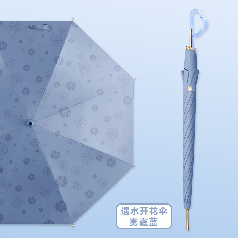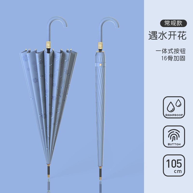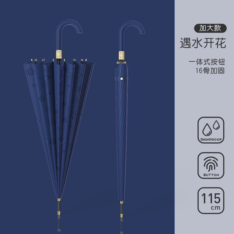 물에 노출되면 꽃이 피는 곡선 손잡이 우산, 자동 남녀 고가 긴 손잡이 우산, 이중 대형 바람 방지 로고 긴 손잡이 우산