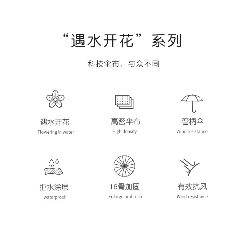 물에 노출되면 꽃이 피는 곡선 손잡이 우산, 자동 남녀 고가 긴 손잡이 우산, 이중 대형 바람 방지 로고 긴 손잡이 우산스토어 가기