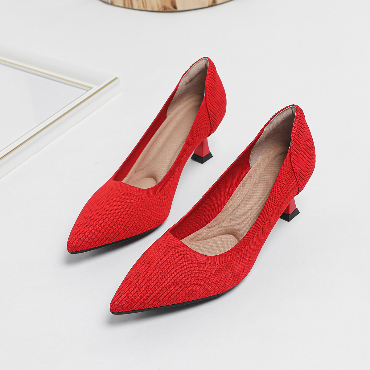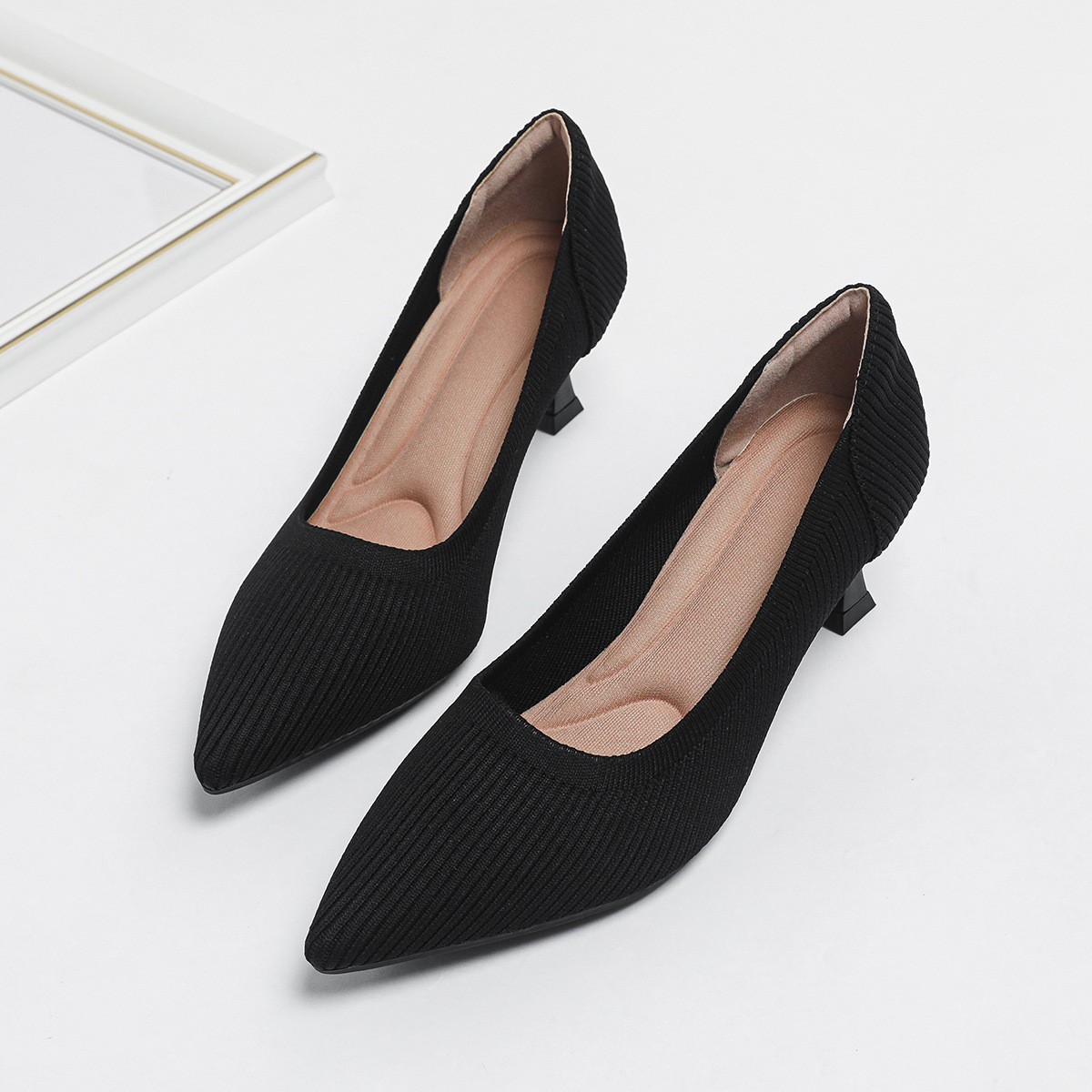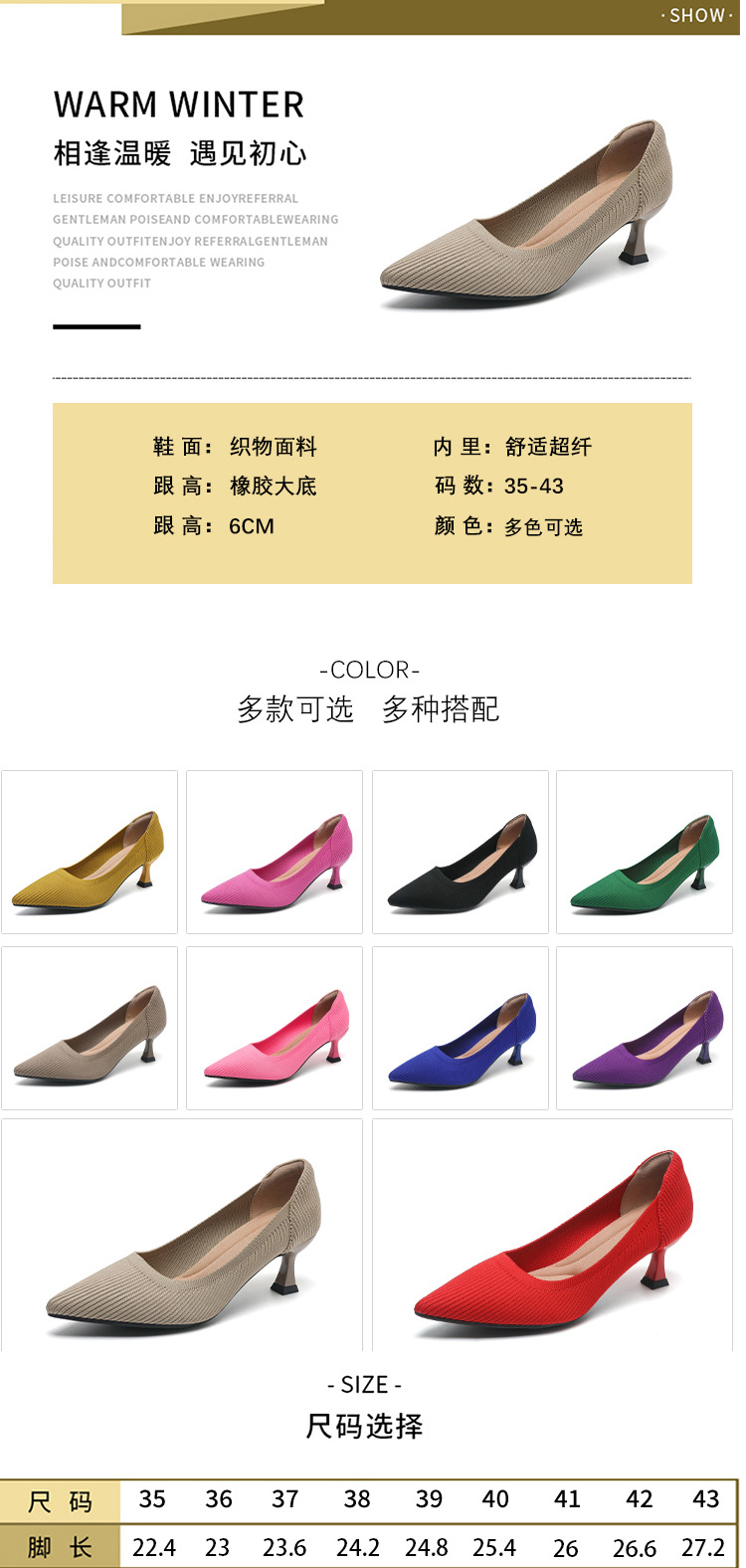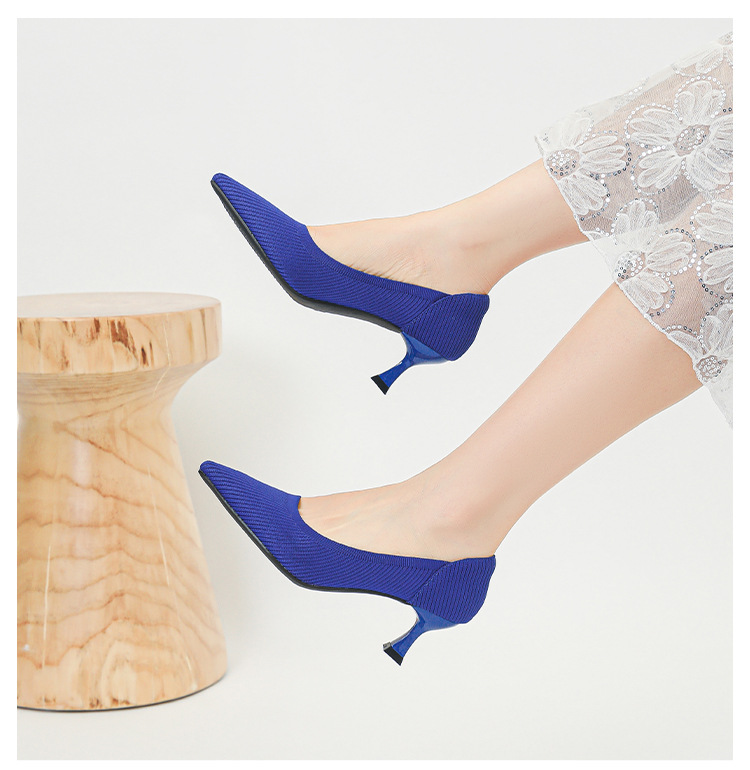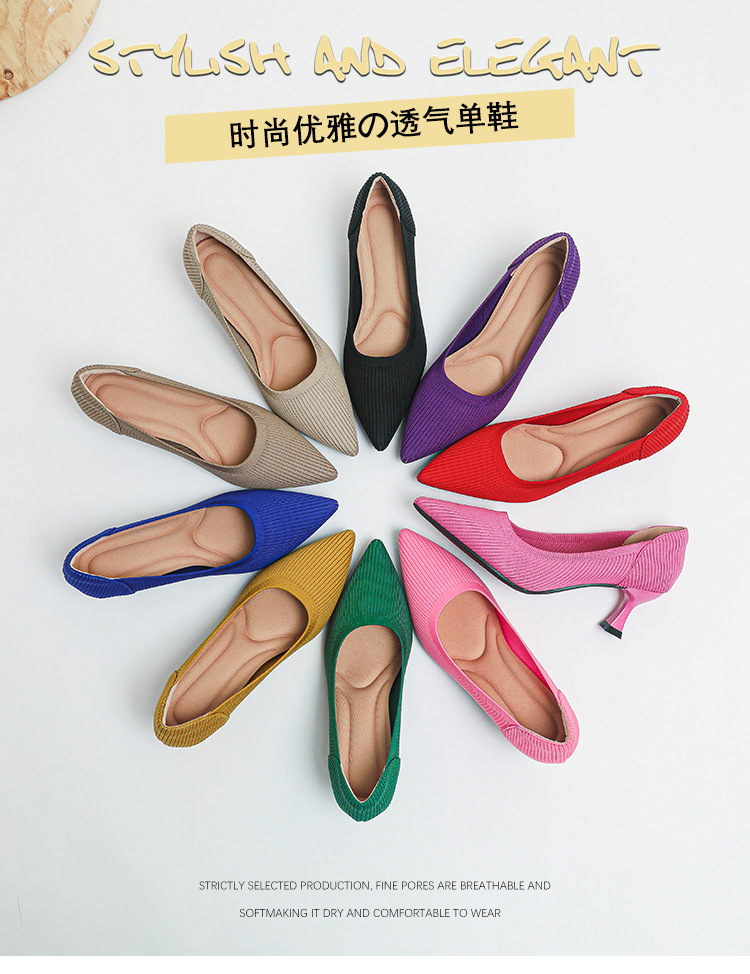 2024 새로운 하이힐 패션 스트레이트 여성 신발 플라이 짠 신발 편안한 통기성 공주 신발 하이힐 우아한
