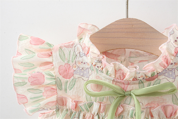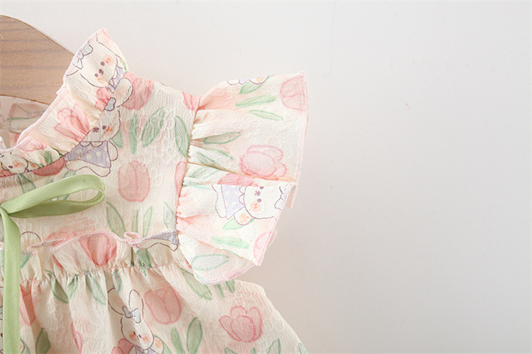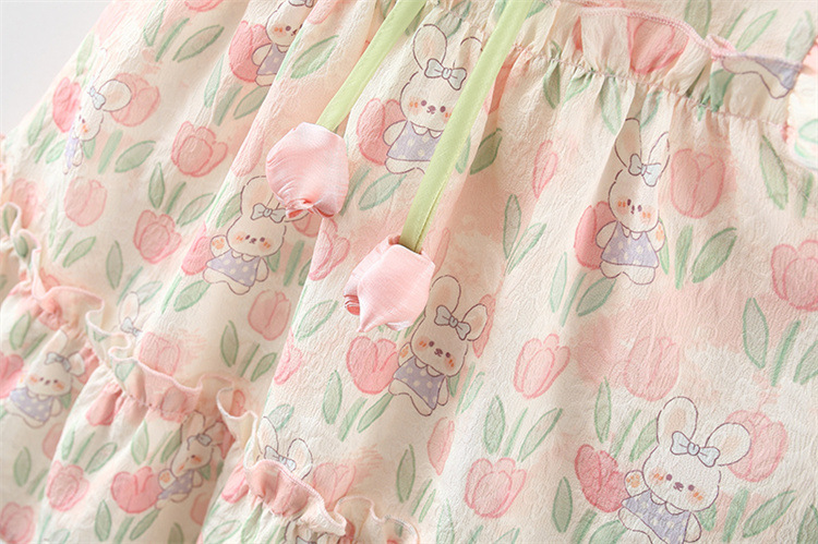 2024 새로운 아동 의류 소녀 드레스 여름 어린이 아기 소녀 튤립 토끼 코튼 공주 드레스 유행
