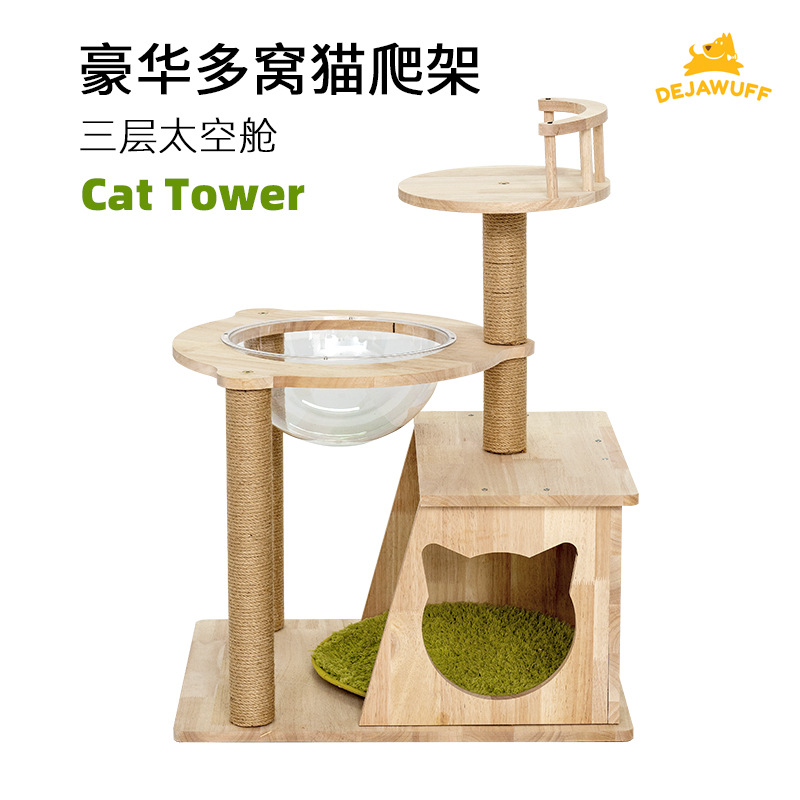 고양이 클라이밍 프레임 단단한 고무 나무 고양이 둥지 3층 우주 캡슐 투명 반구 수직 고양이 빌라 고양이 스크래치 컬럼 사용자 정의스토어 가기