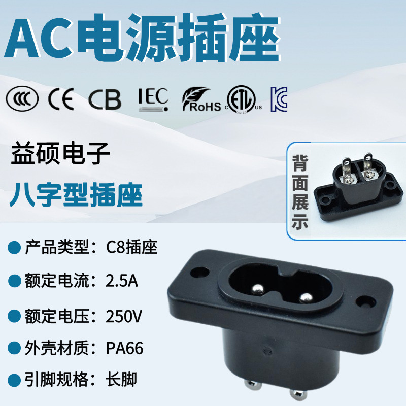 AC电源插座:C8插座 八字形