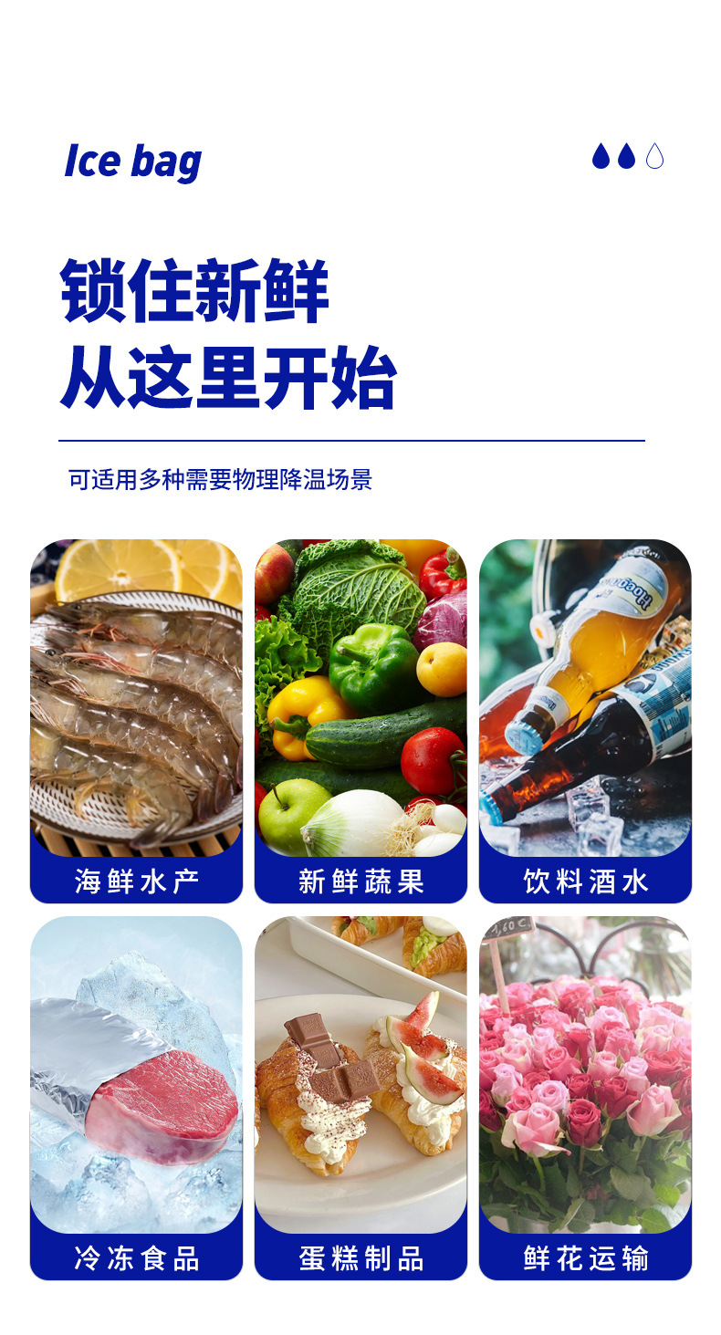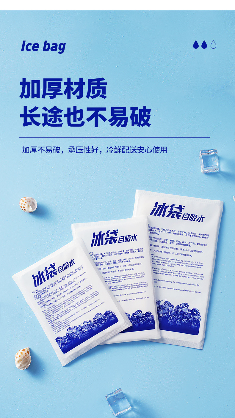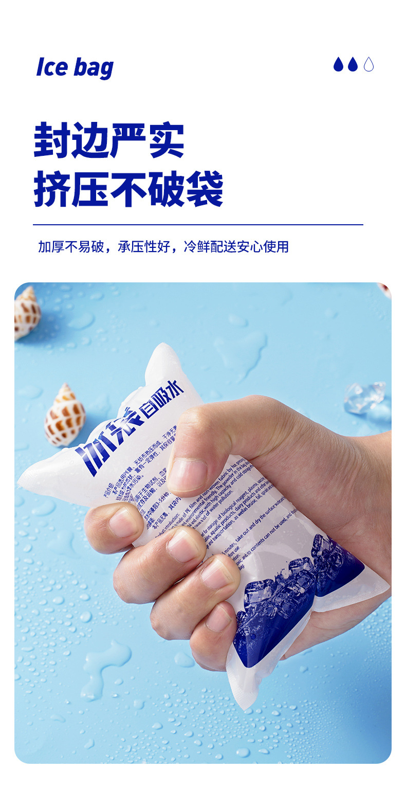 두꺼운 자체 밀봉 일회용 물 주입 아이스 백 재사용 가능한 냉장 보관 운송 PE 접이식 휴대용 아이스 백