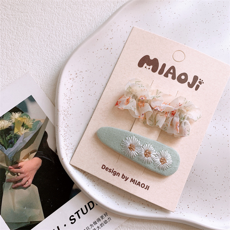 새로운 어린이 수놓은 꽃 활 헤어핀 달콤한 소녀 방귀 클립 사이드 부러진 머리 BB 클립 쌍 헤어핀