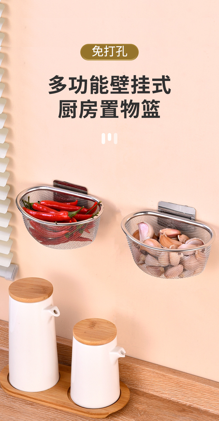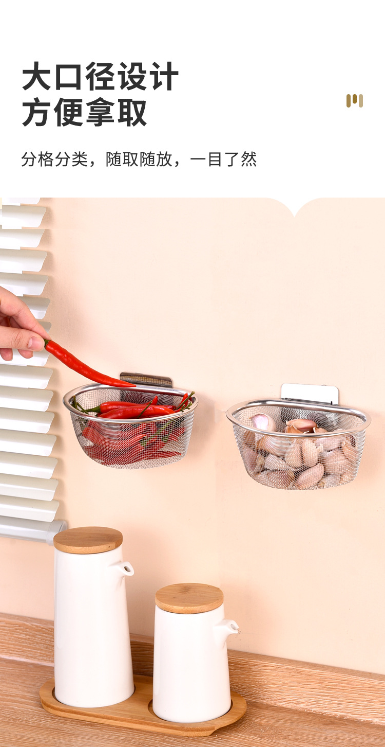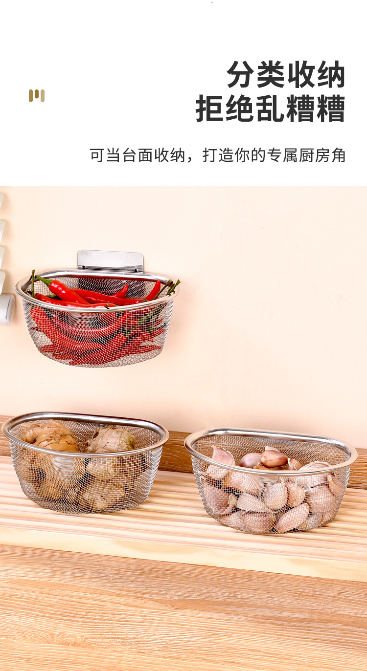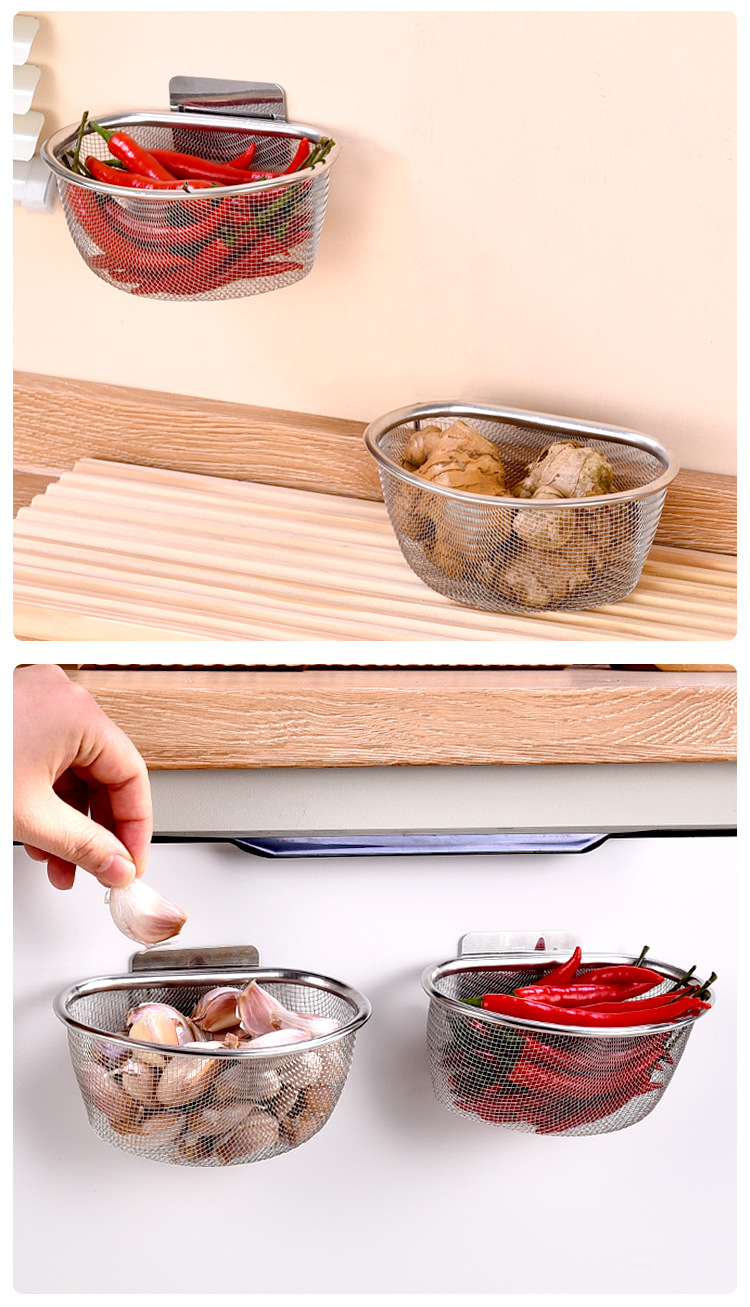 주방 보관 상자 비 천공 스테인레스 스틸 생강 마늘 벽걸이 밀렛 칠리 저장 바구니 벽걸이 스토리지 랙