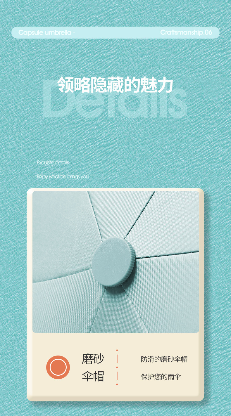 • 5 폴드 6 뼈 검은 접착제 라이트 블루-캡슐 상자