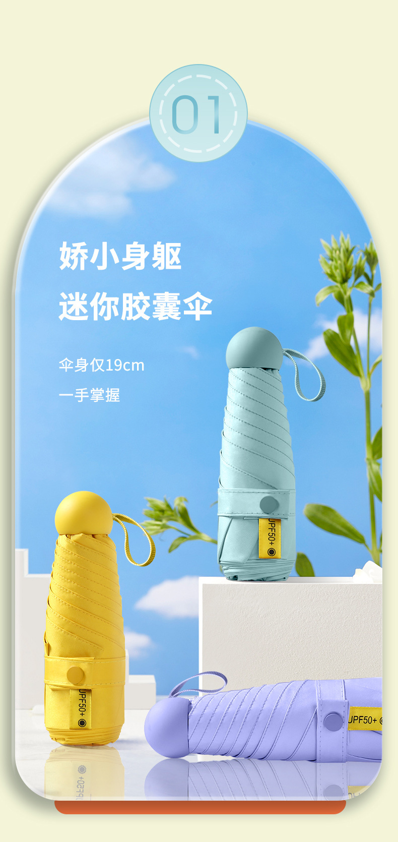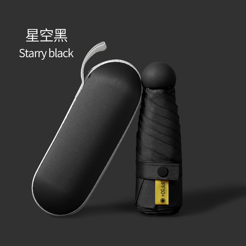다섯 접은 검은 고무 햇빛 자외선 보호 태양 우산 햇빛과 비 이중 사용 접는 포켓 우산 광고 우산스토어 가기