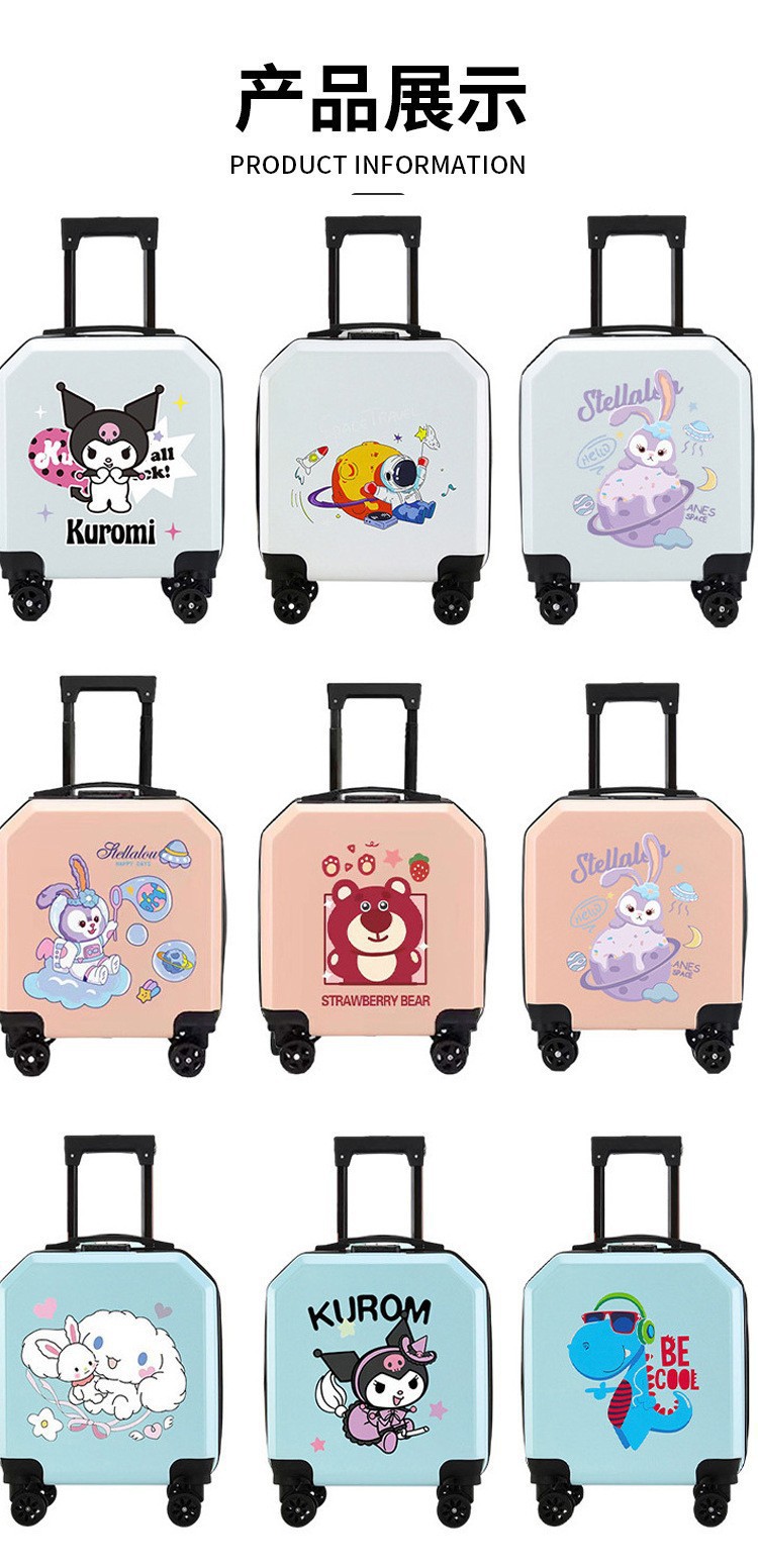 새로운 18 인치 귀여운 만화 트롤리 케이스 인쇄 가능한 로고 도매 어린이 수하물 유니버설 휠 학생 암호 상자스토어 가기