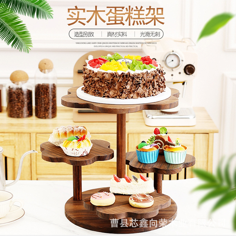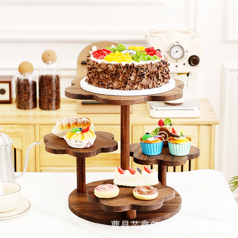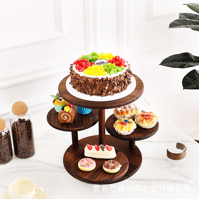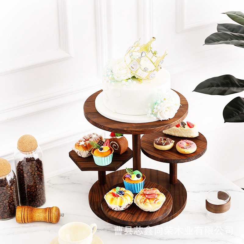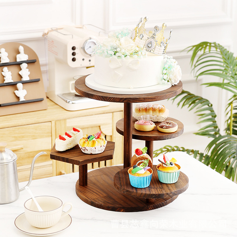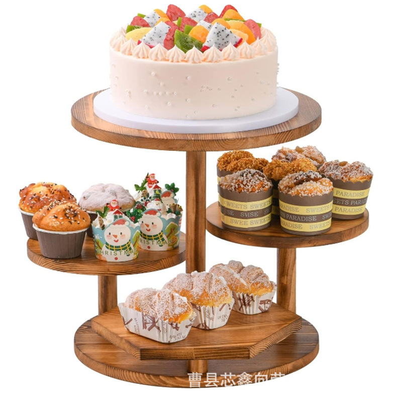 단단한 나무 디저트 테이블 장식품 다층 컵 케이크 데스크탑 스낵 디스플레이 랙 로그 디저트 랙 나무 케이크 랙스토어 가기