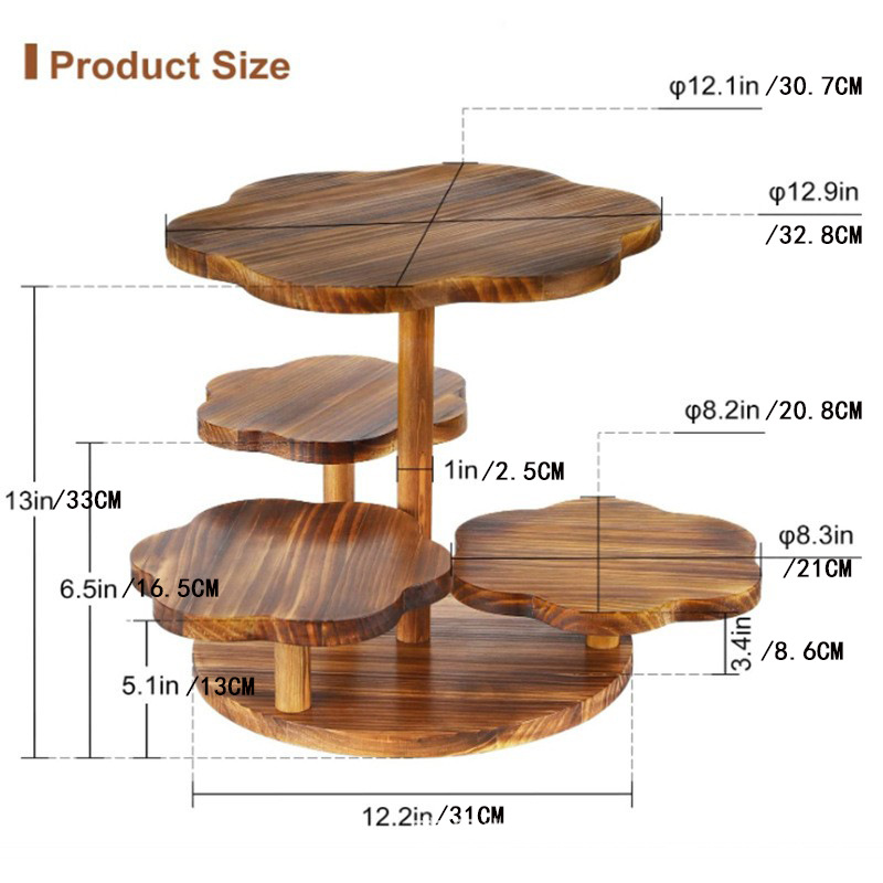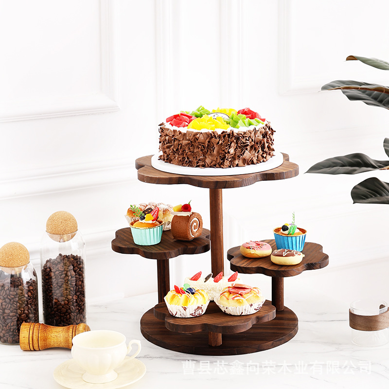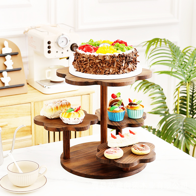 단단한 나무 디저트 테이블 장식품 다층 컵 케이크 데스크탑 스낵 디스플레이 랙 로그 디저트 랙 나무 케이크 랙