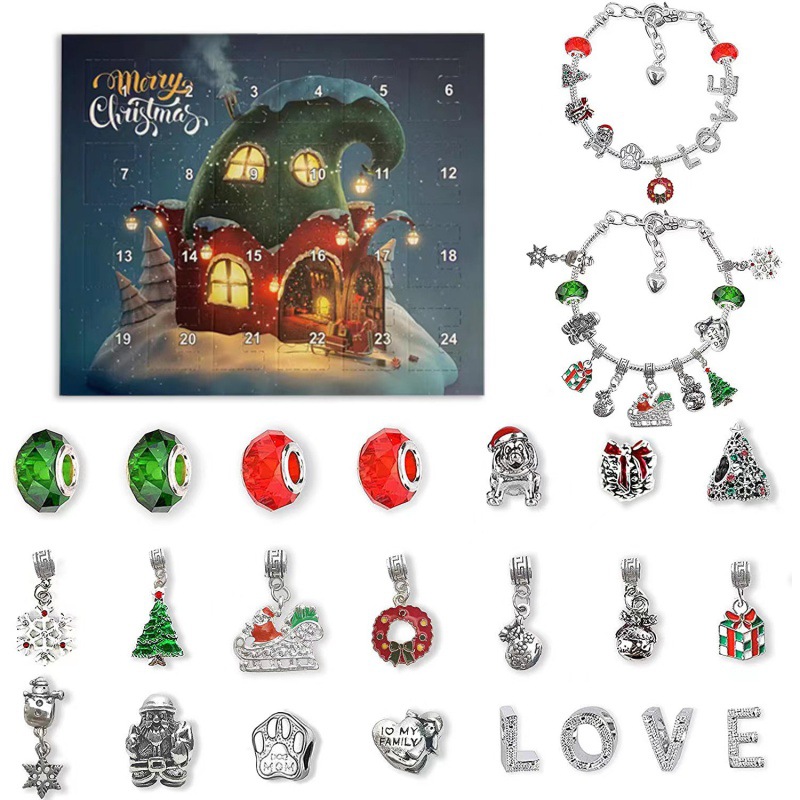 크리스마스 카운트 다운 24 달력 출현 깜짝 블라인드 박스 크리스마스 DIY 창조적 인 조합 크리스마스 팔찌 세트