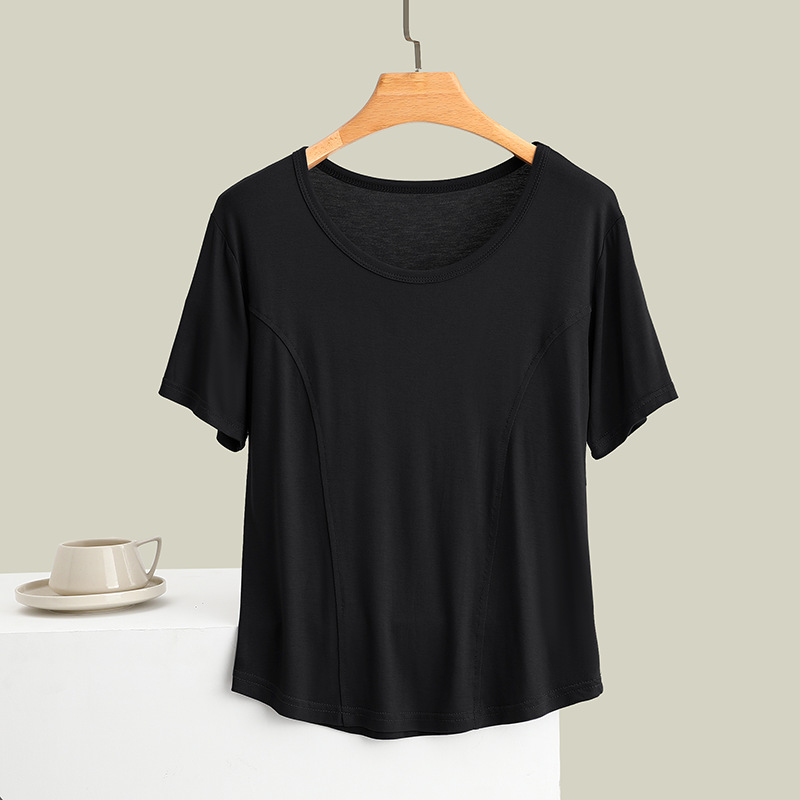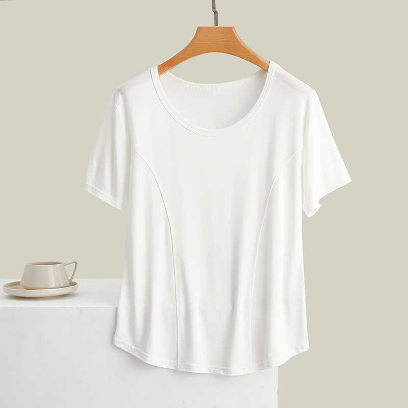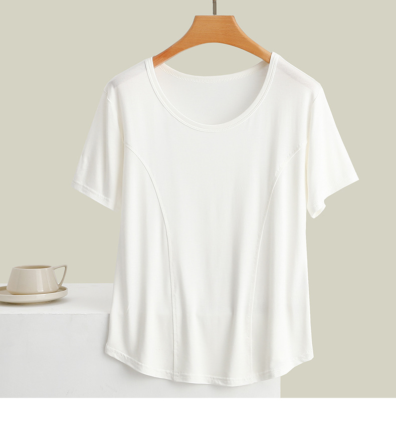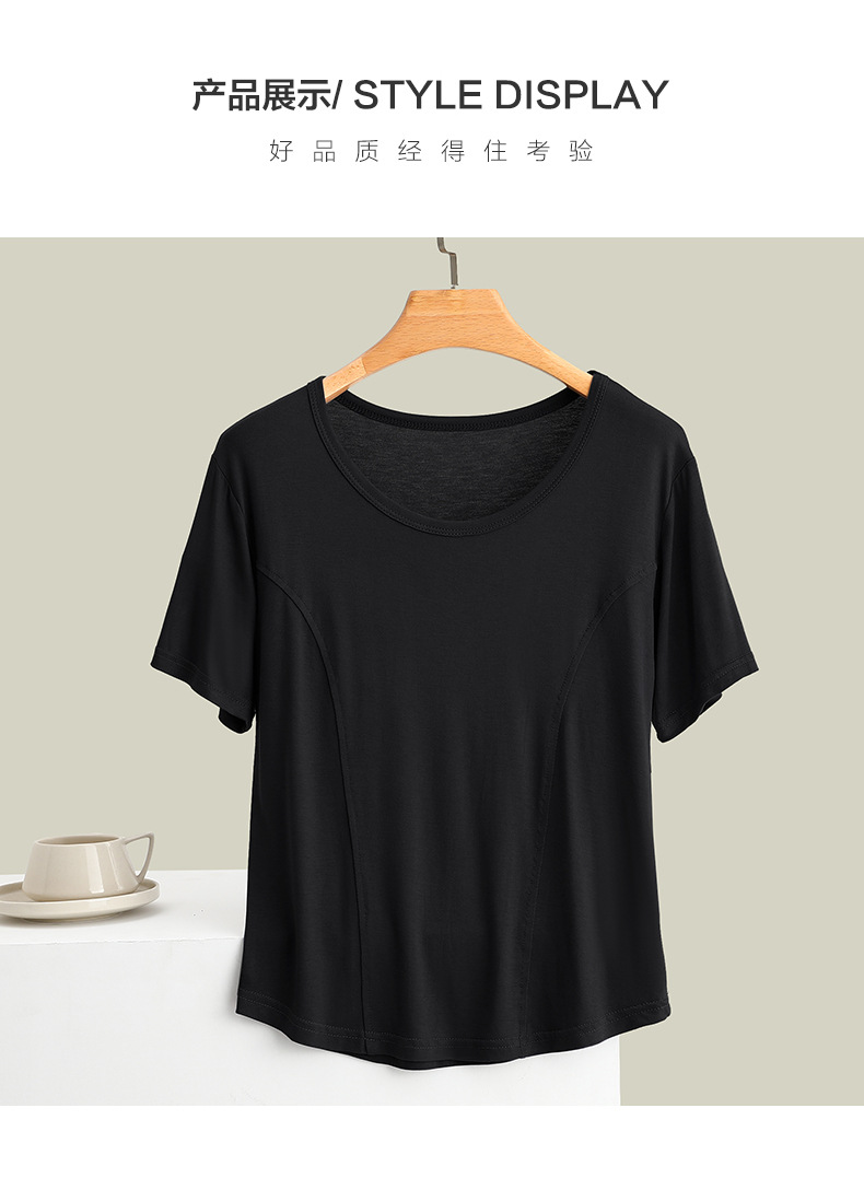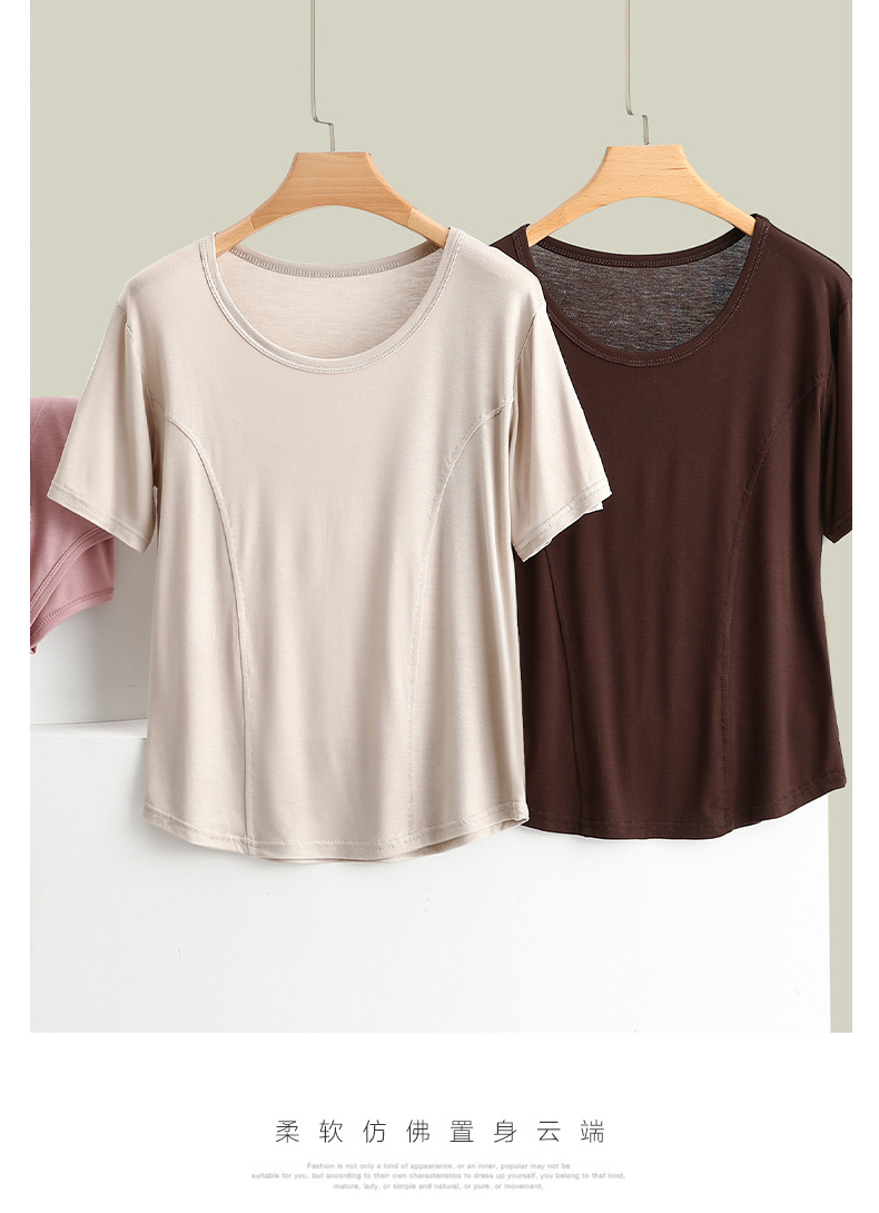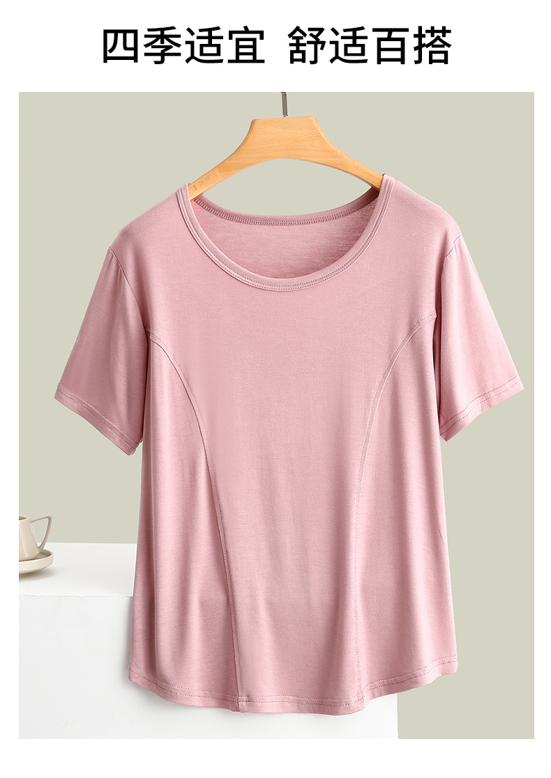 莫代尔拼接圆领短袖T恤大码薄款显瘦外穿上衣修身内搭打底衫女夏