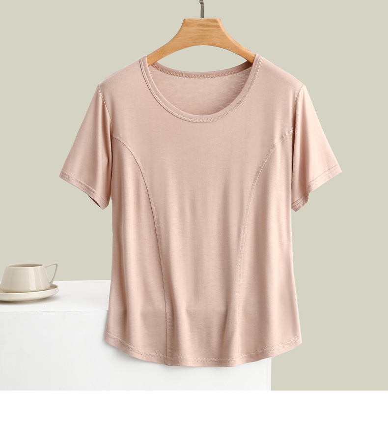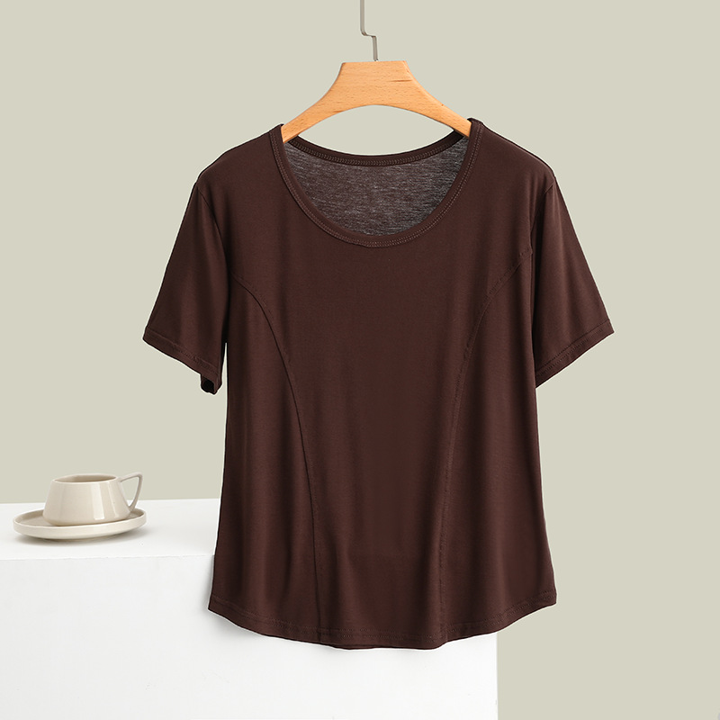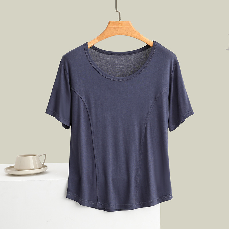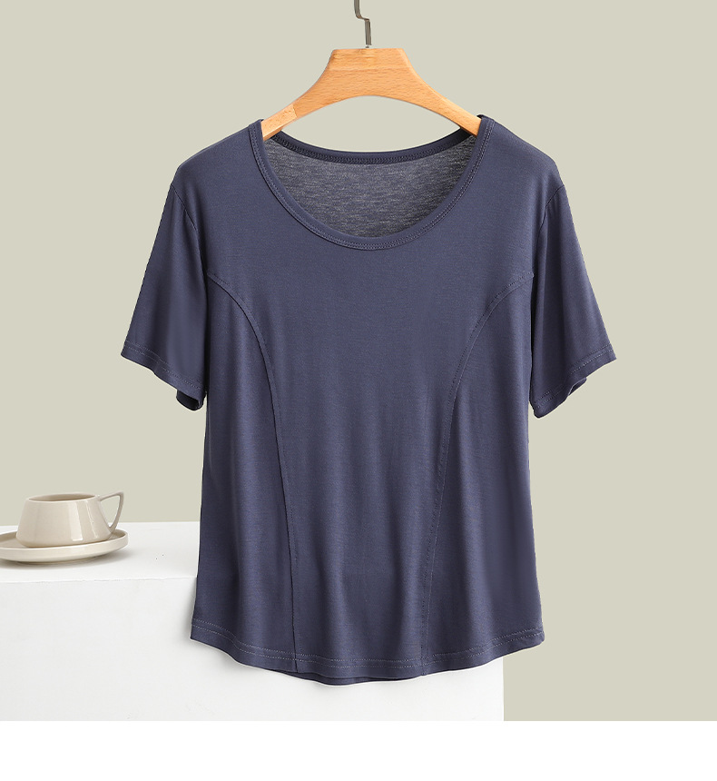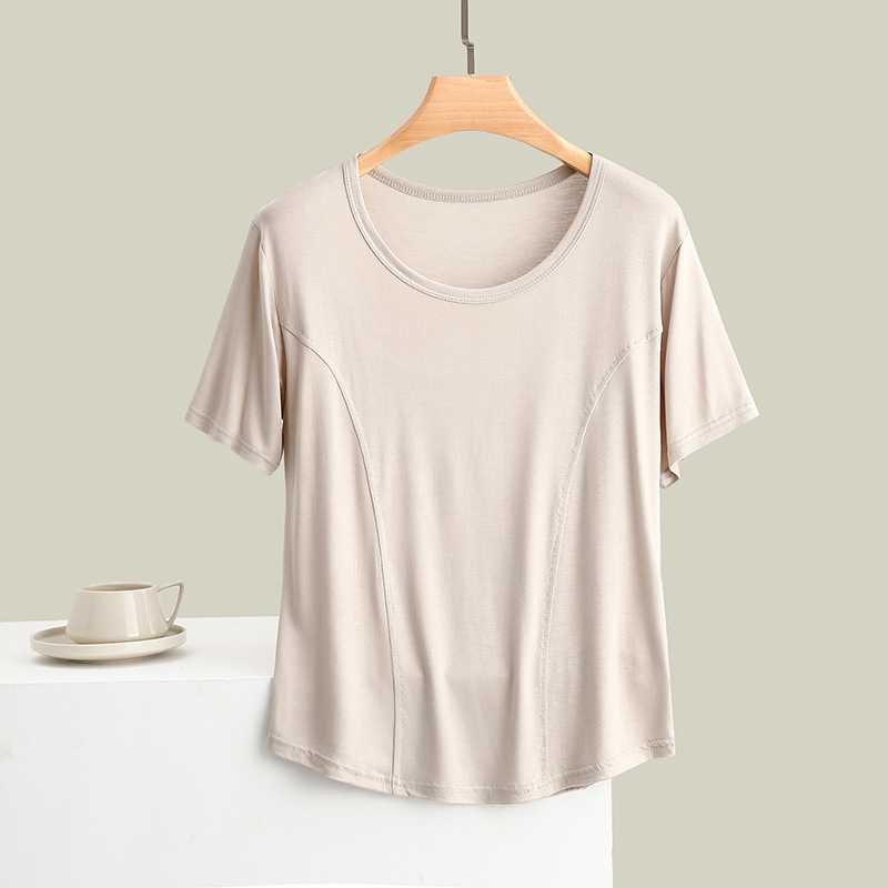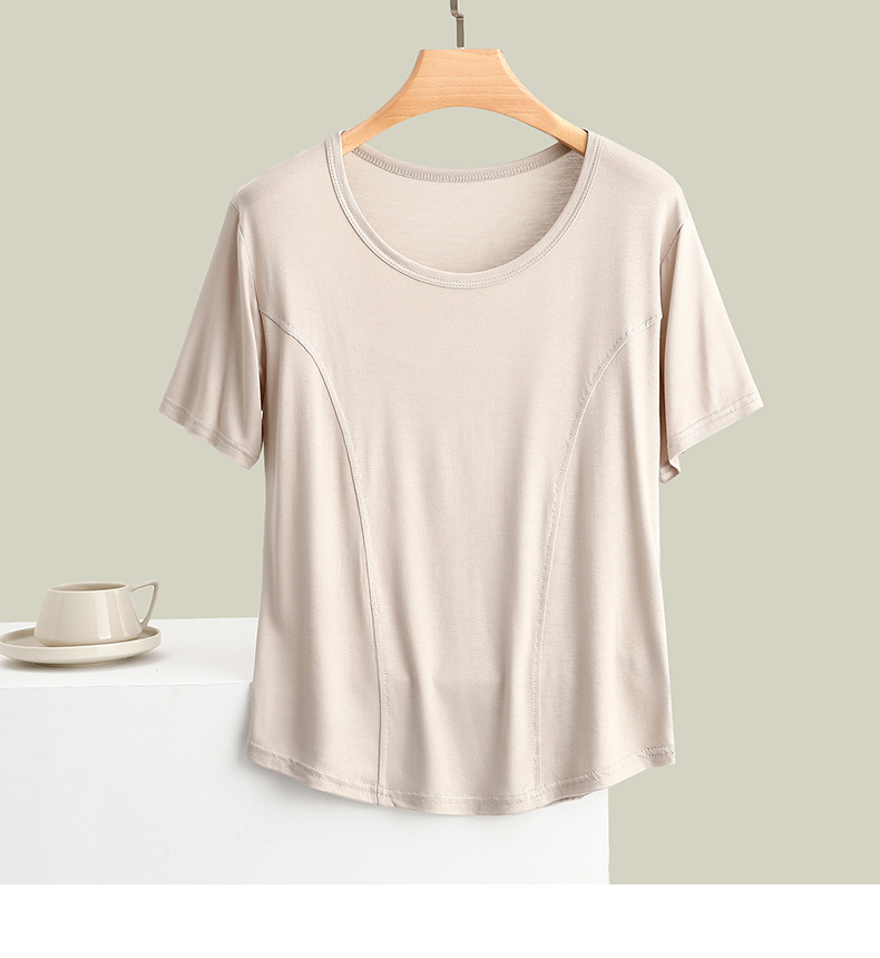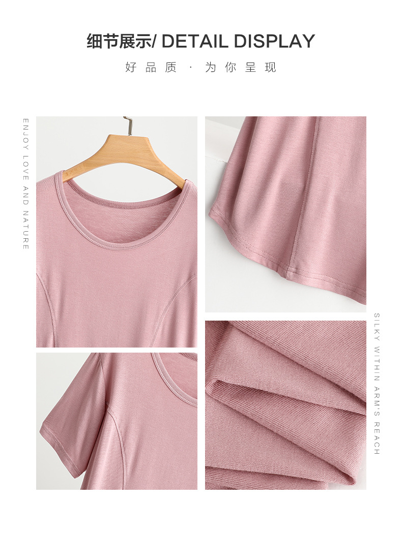 莫代尔拼接圆领短袖T恤大码薄款显瘦外穿上衣修身内搭打底衫女夏
