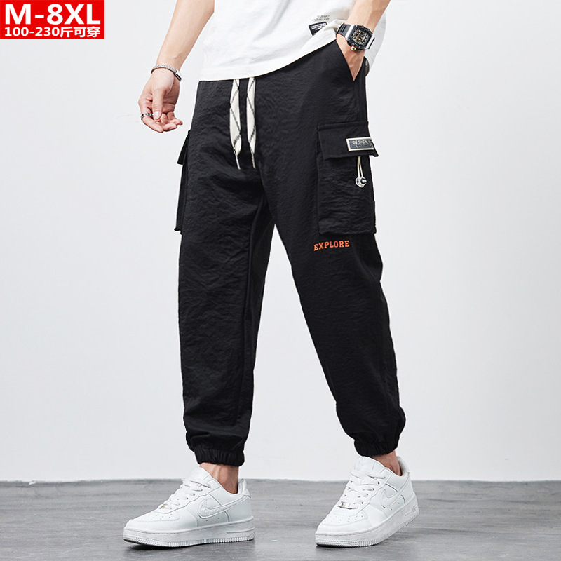여름 트렌디 한 남자 잘 생긴 올매치 레그 툴링 자른 바지 통통한 대형 플러스 뚱뚱한 느슨한 얇은 스포츠 캐주얼 바지